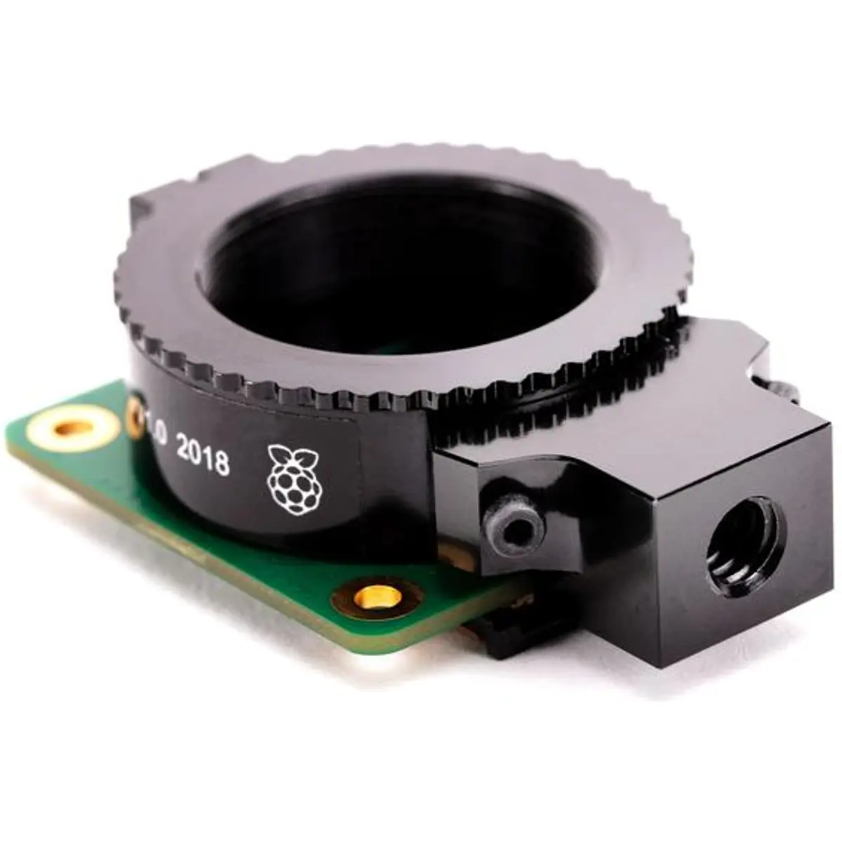 Possui um sensor Sony IMX477, um cabo FPC de 200 mm para conexão ao seu Raspberry Pi, um suporte de lente de alumínio fresado com anel de ajuste de foco e montagem de tripé de 1/4 ”-20 integrado e um adaptador de montagem C para CS.