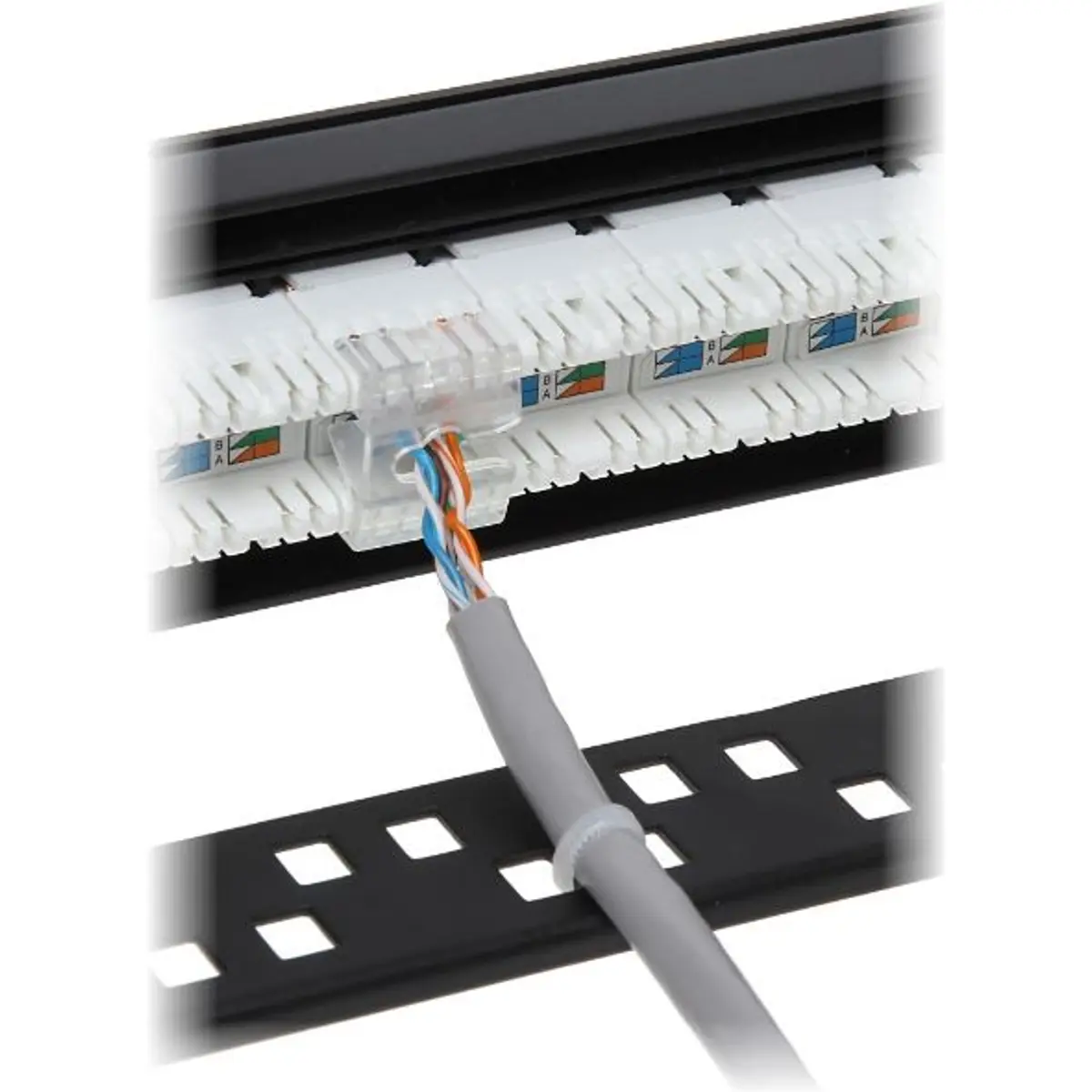 Painel de conexão com conectores Keystone RJ-45.