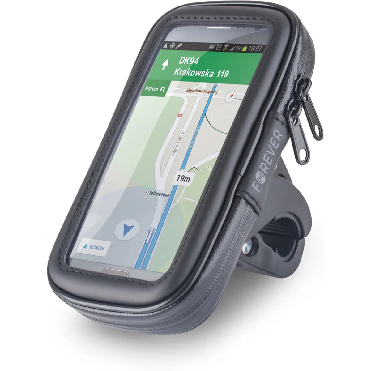 O suporte para bicicleta Forever BH-100 XL é um produto ideal para ciclistas que usam seus smartphones enquanto andam. À prova d'água - pode ser usado mesmo na chuva. Preso ao guiador da mota ou bicicleta, mantém o aparelho estável no lugar certo para o utilizador e permite o uso livre de navegação ou reprodutor de música. A pelicula transparente permite que você use o telefone sem retirá-lo da bolsa. O suporte é giratório, permitindo que seja colocado na posição vertical ou horizontal. Graças às suas propriedades à prova d'água, o dispositivo dentro da capa pode ser usado na chuva sem preocupações. A caixa é fechada hermeticamente com um cadeado, para que o telefone fique efetivamente protegido mesmo nas condições mais difíceis. O suporte de tamanho XL foi projetado para telefones com tamanhos de tela de até 5,7 ". Adequado para smartphones como: Samsung, Huawei, LG, Sony, iPhone, Xiaomi e outros.