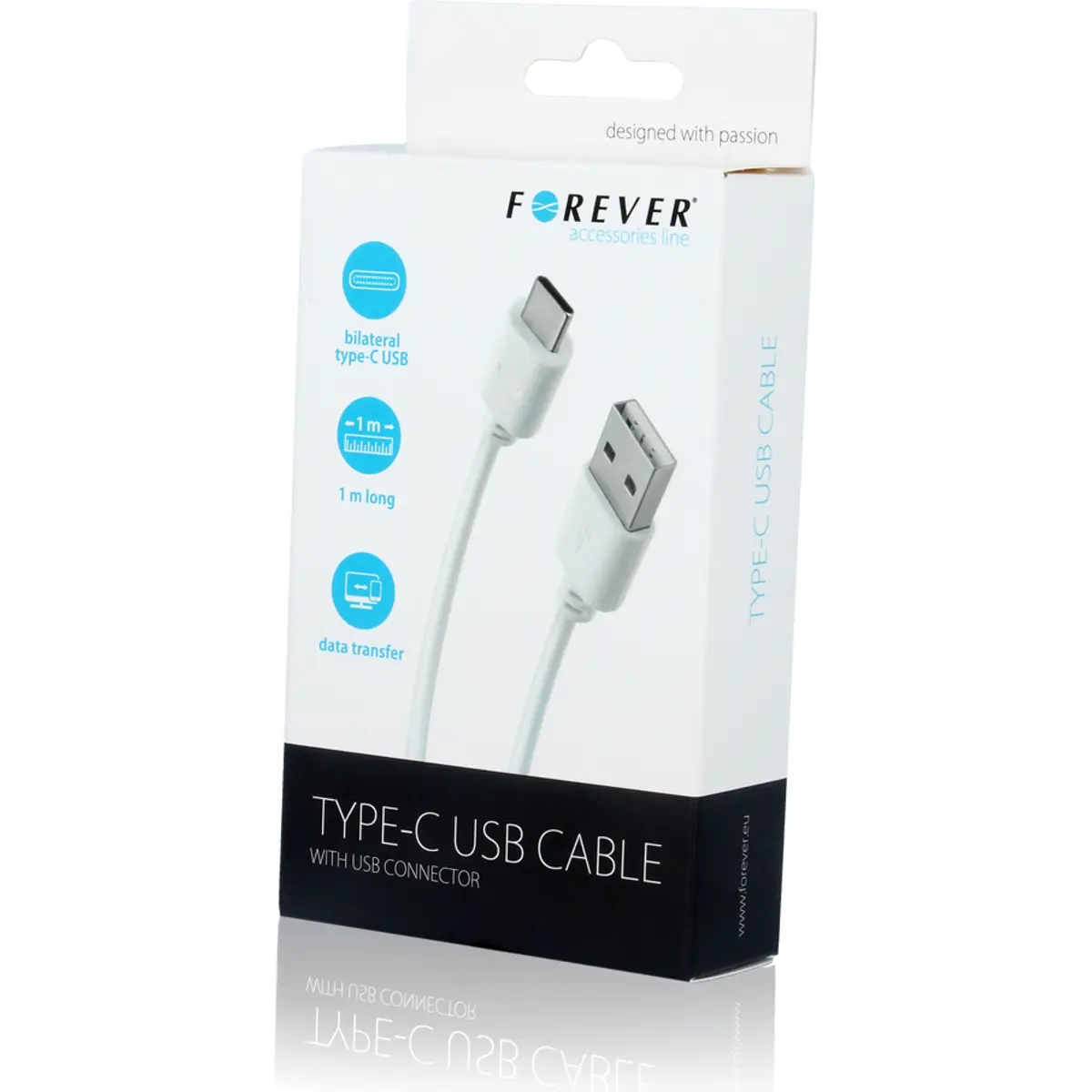 Forever - Cabo USB A 2.0 macho - USB C - 1.0m - branco