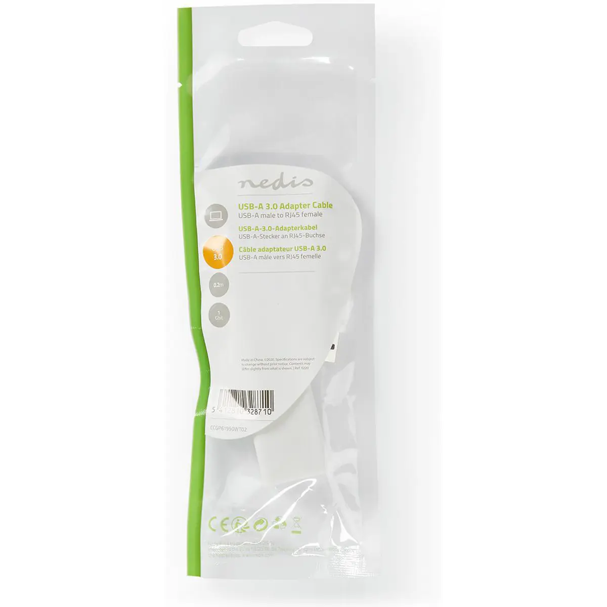 Nedis CCGB61950WT02 - Adaptador USB 3.2 | USB-A macho - RJ45 fêmea | 1 Gbit | 0,2 m | Branco