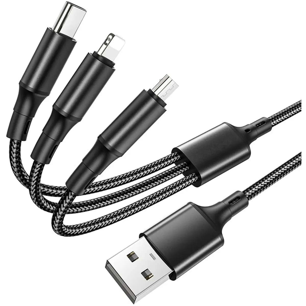 Cabo USB 3-em-1 Lightning + USB-C + micro-USB - Fast Charge - Preto
