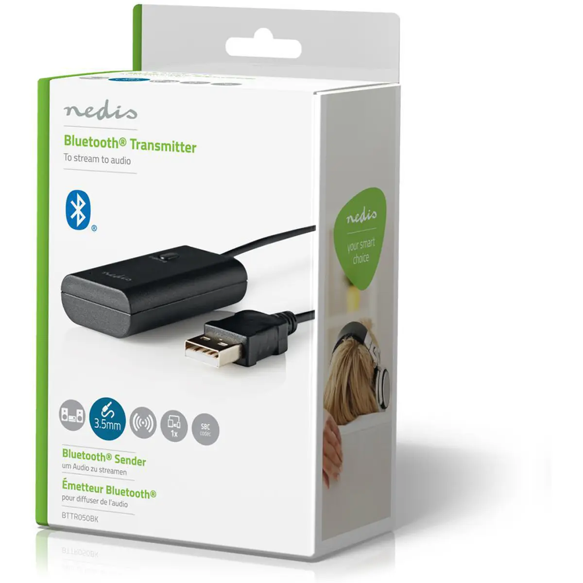 Nedis BTTR050BK - Transmissor de áudio Bluetooth 5.0 SBC Jack 3.5mm