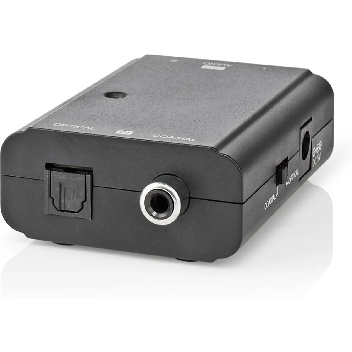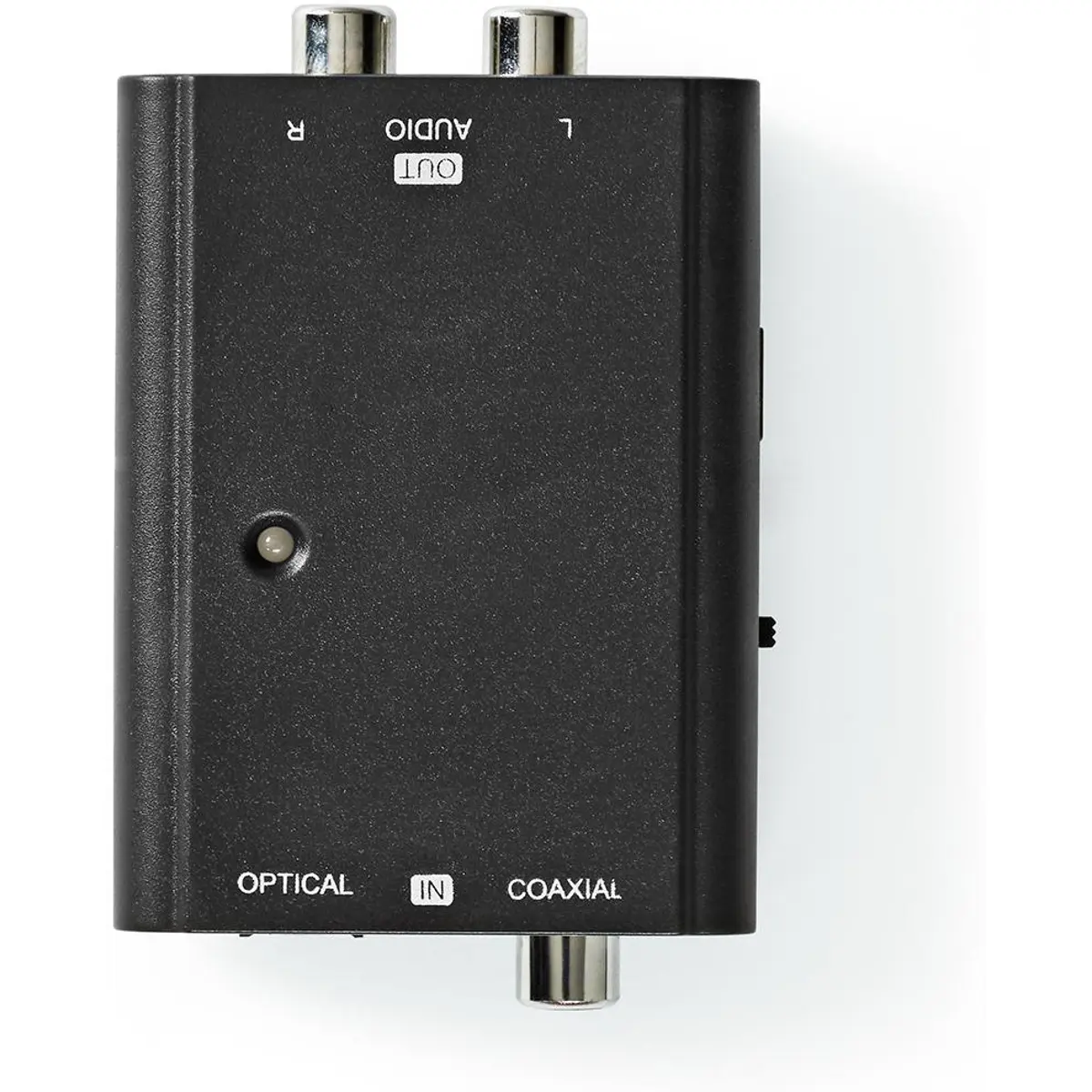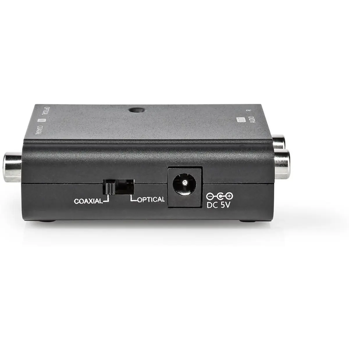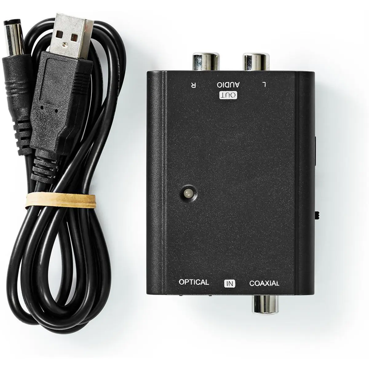 Conecte os mais recentes visores digitais com saídas ópticas a amplificadores com conexões analógicas. Este conversor Nedis® de áudio digital para RCA estéreo converte o sinal de áudio digital RCA ou TosLink em sinal de áudio estéreo analógico. Inclui um cabo de carregamento DC para USB (adaptador não incluído) para facilitar a alimentação deste conversor de áudio digital.