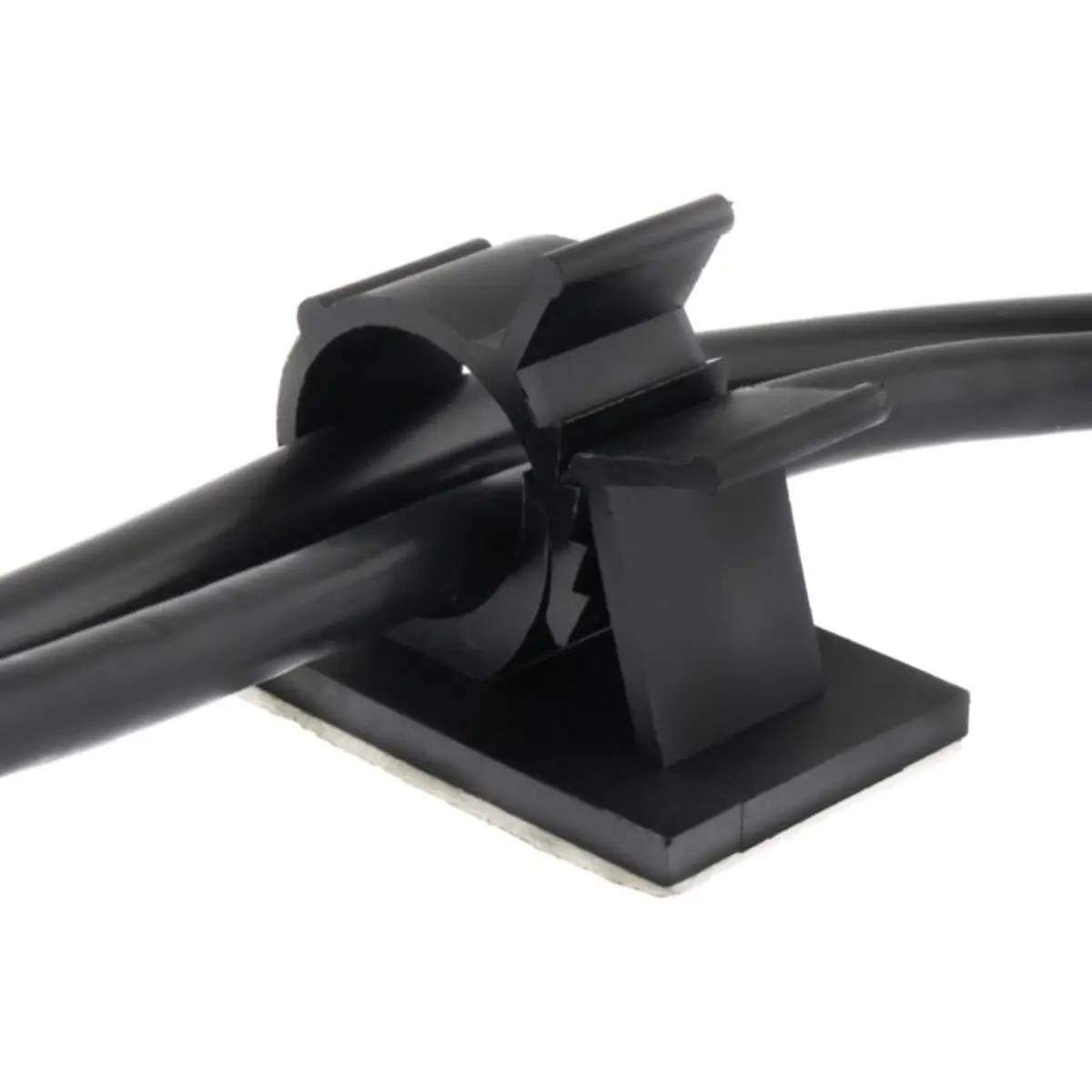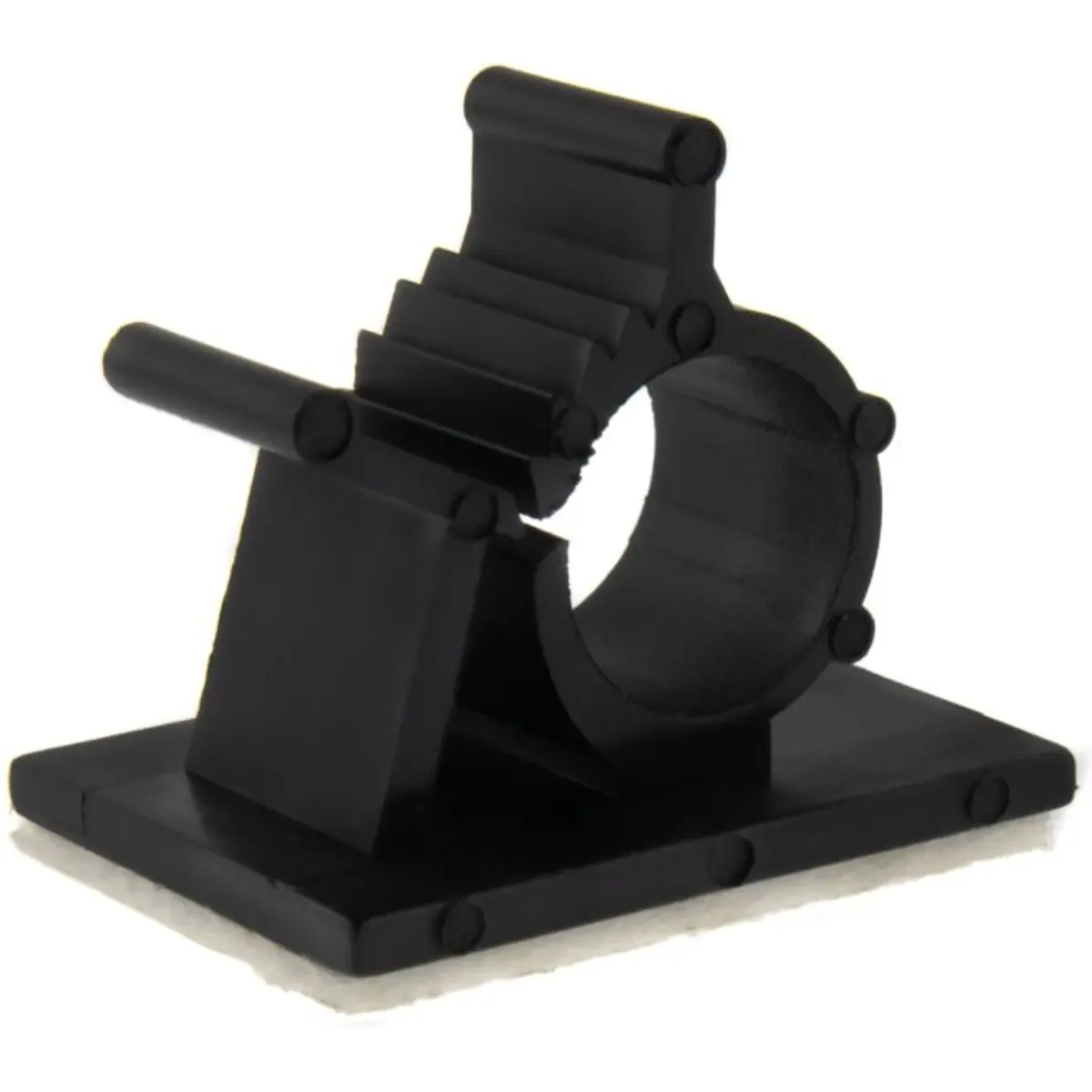 Abraçadeira de fixação com tranca e adesivo para cabos de Ø8-10 mm, em PA6.6 poliamida, preta. Dimensões: 25,4 x 19,1 x 23,8 mm. Ideal para organizar e prender cabos e fios com uma fixação estável e durável, oferecendo instalação simples e prática no dia a dia.