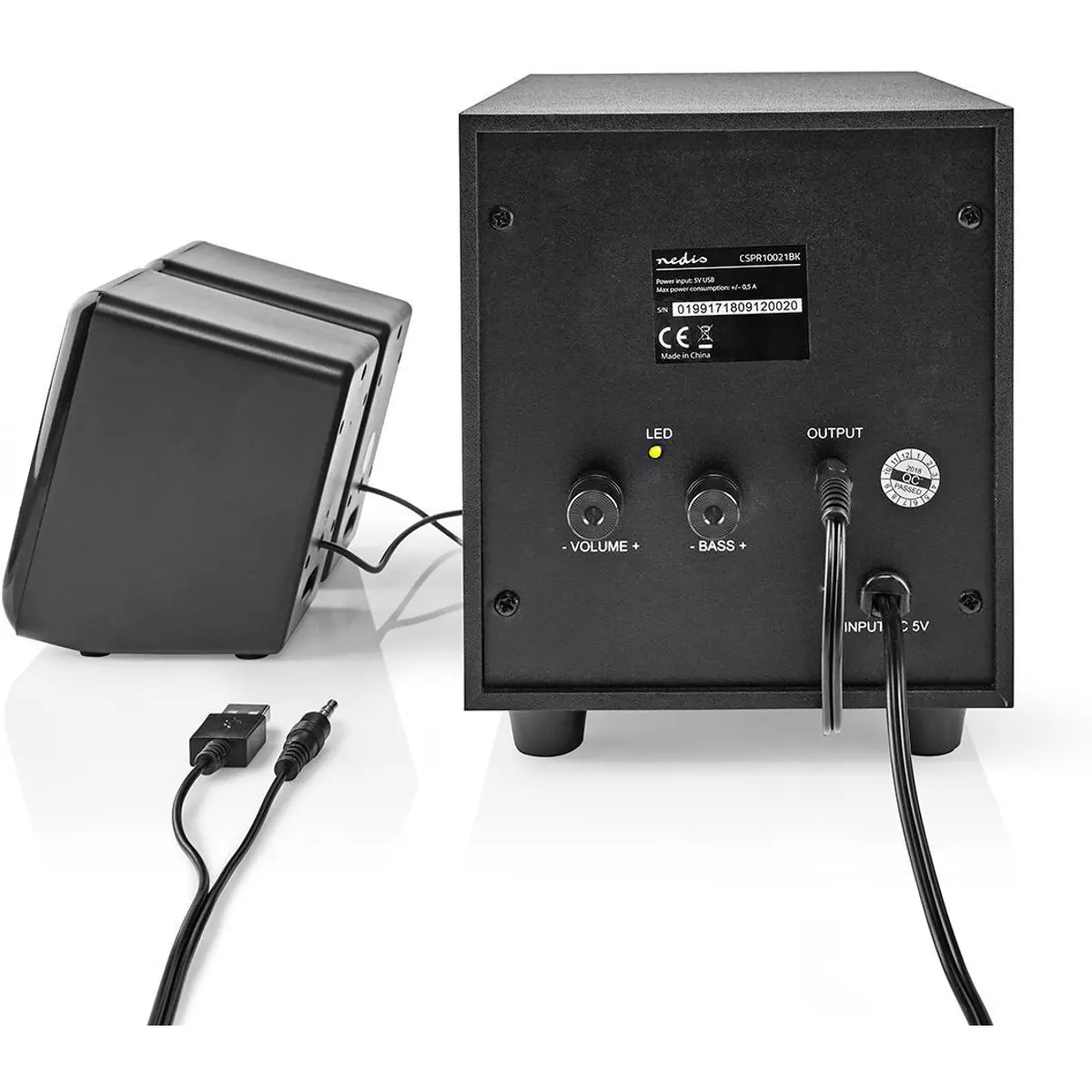 Os dois alto-falantes e o poderoso subwoofer se conectam ao seu PC ou smartphone por meio de um conector estéreo jack de 3,5mm e podem ser alimentados por USB sem a necessidade de um adaptador de alimentação externo.