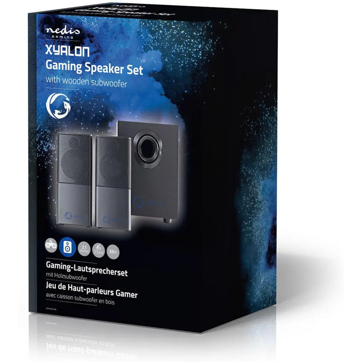 Dê vida aos seus jogos com este conjunto de alto-falantes estéreo para gamers da Nedis que inclui um poderoso subwoofer de madeira.