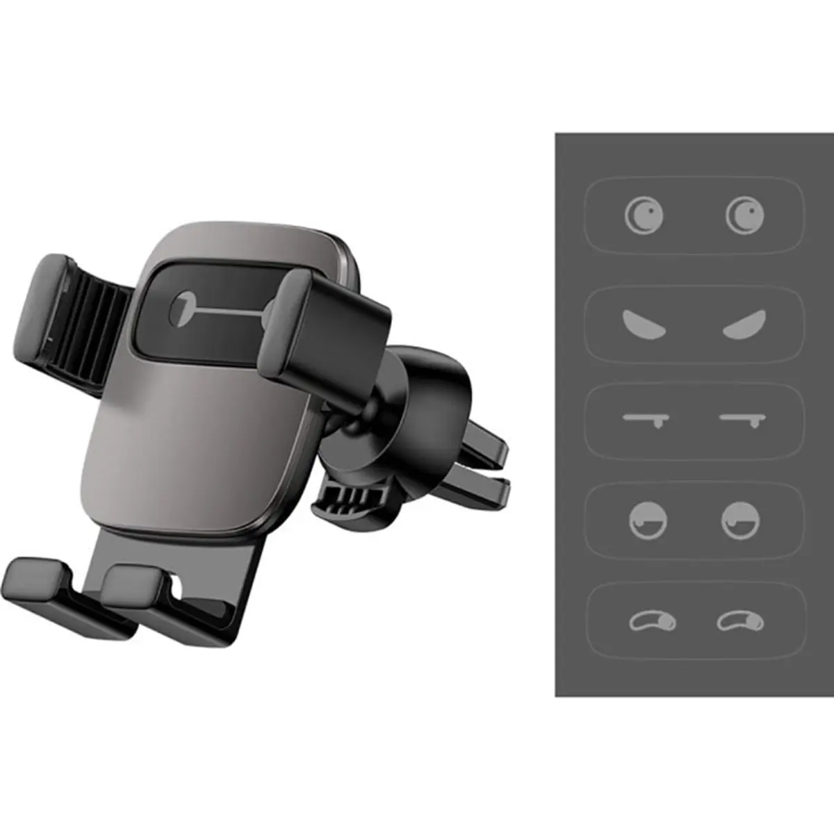 O suporte Baseus Cube Gravity é um apoio universal para telemóvel que se prende por gravidade numa grelha de ventilação, permitindo fixação estável e operação com uma só mão. O mecanismo com bola giratória de 360° oferece ajuste de ângulo para uma visibilidade ideal. Construído em liga de alumínio com elementos em ABS, inclui almofadas de silicone para maior aderência e proteção contra riscos. Compatível com telemóveis de 4,7 a 6,6 polegadas, e vem com cinco emoticons adesivos trocáveis, na cor preta.