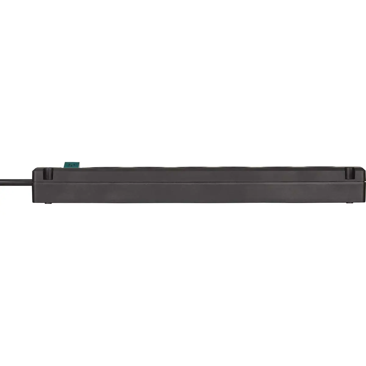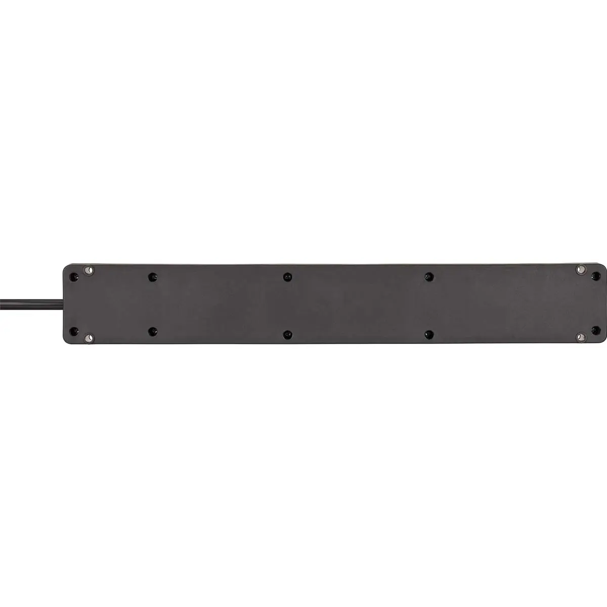 Bloco com 5 tomadas bem afastadas e posicionadas com ângulo de 90° que permitem ligar diversos carregadores grandes, uns ao lado dos outros.
