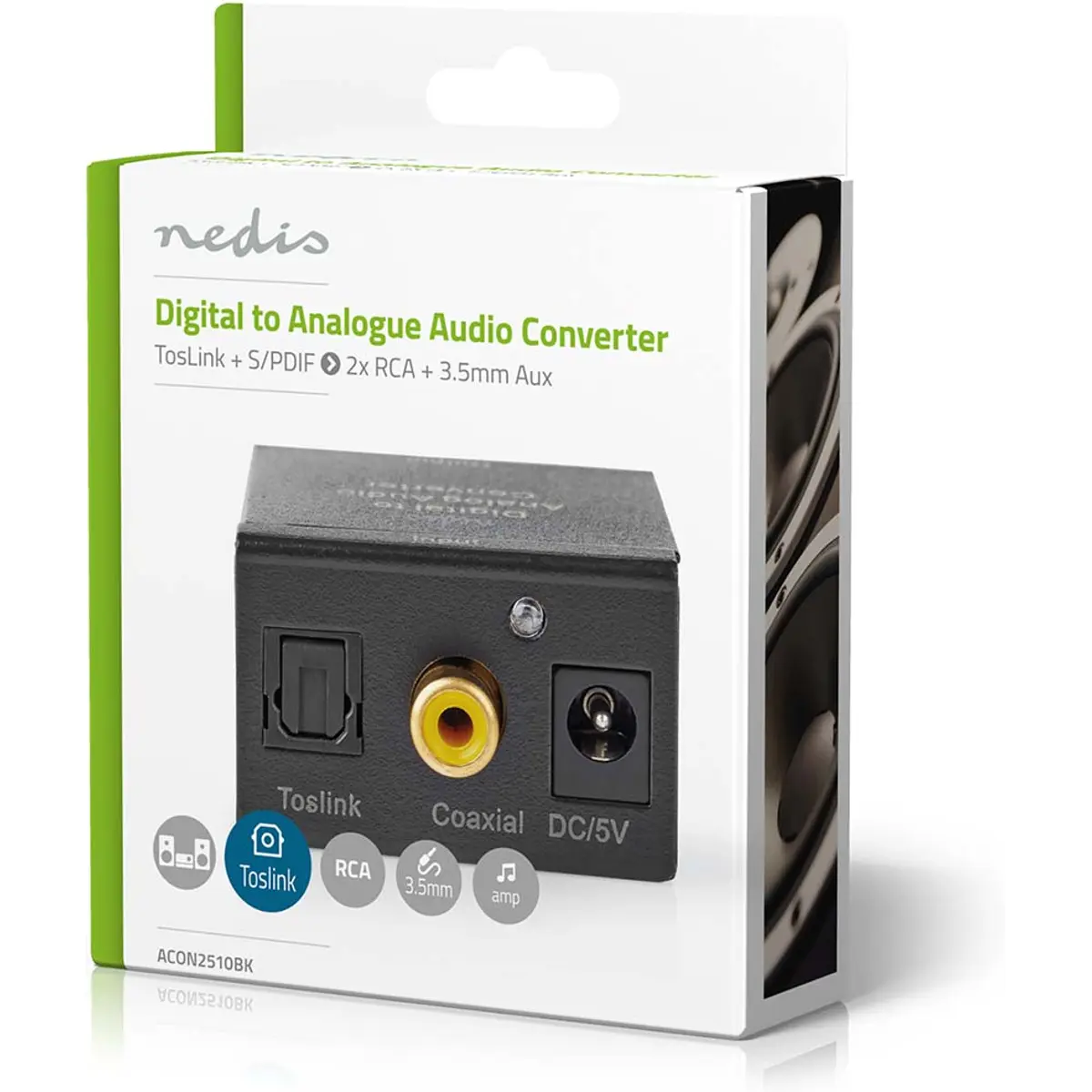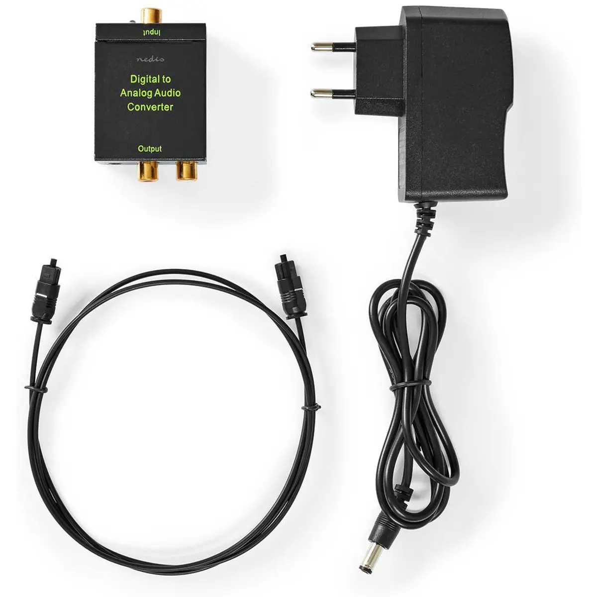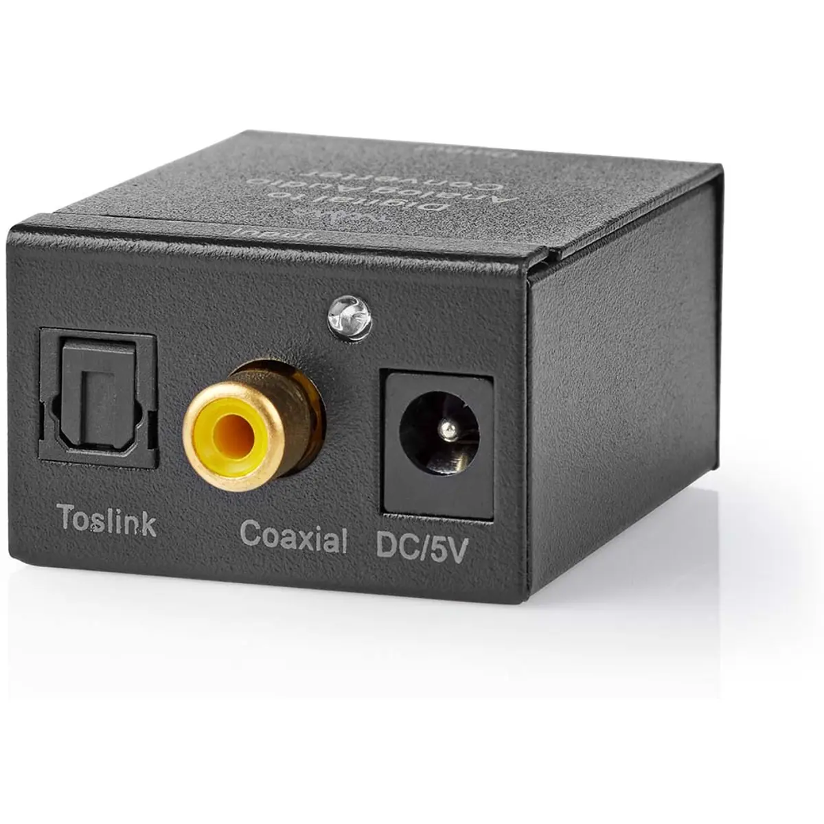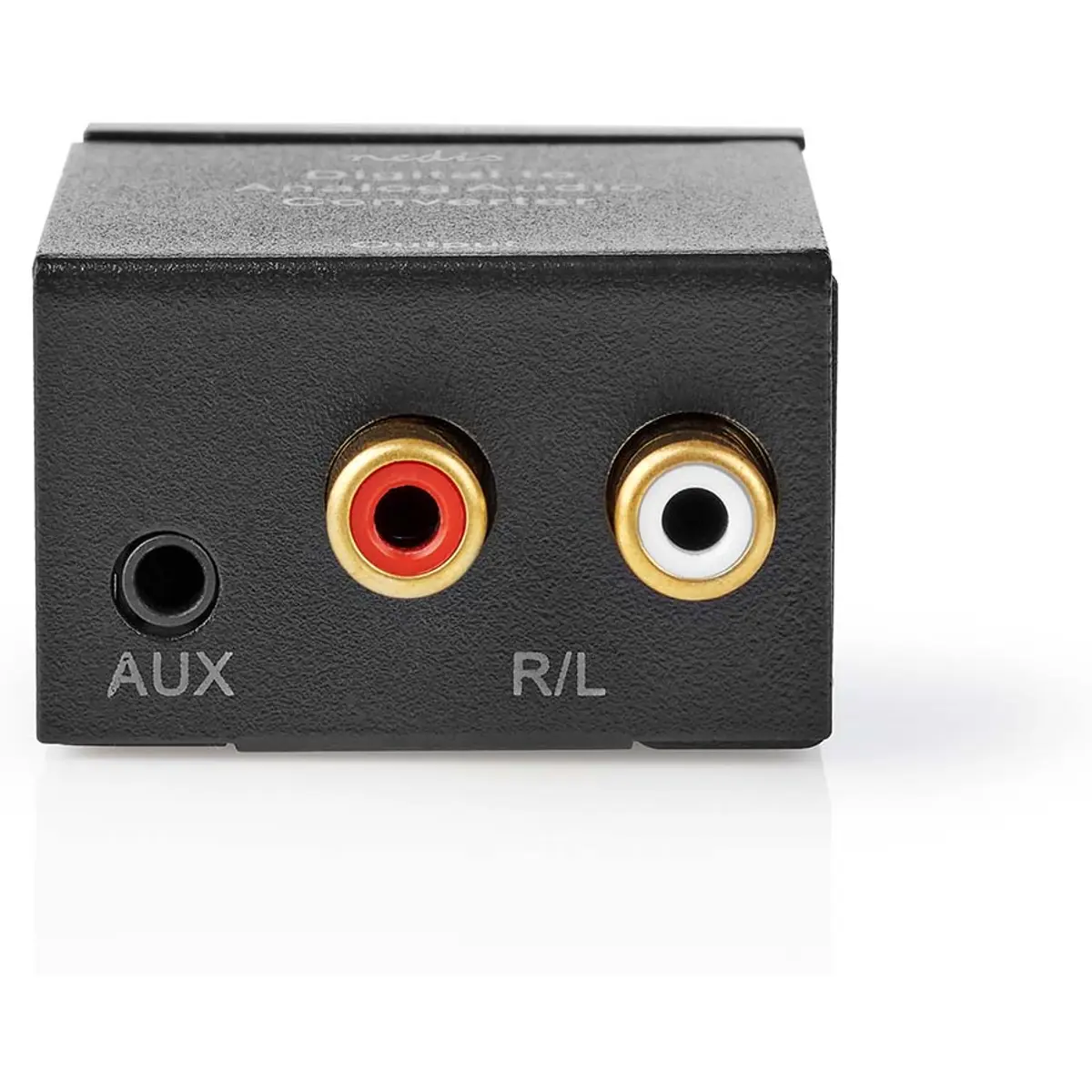 Este conversor de áudio converte um sinal digital Toslink ou S/PDIF num sinal analógico stéreo.