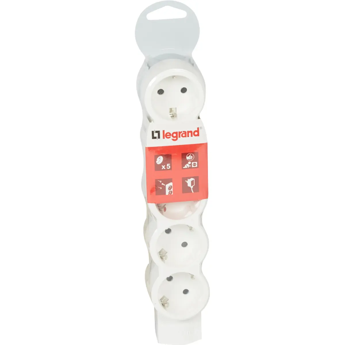 - Tomada de 90° para conectar um transformador sem bloquear outra tomada