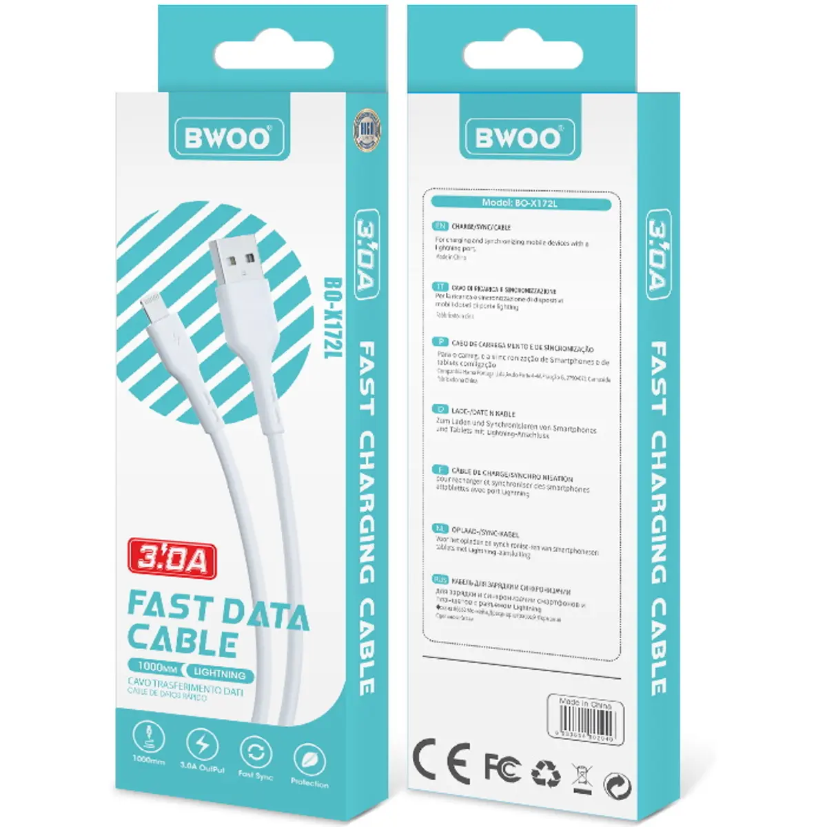 BWOO X172L - Cabo USB-A -> Lightning 3.0A - branco - 1.0m