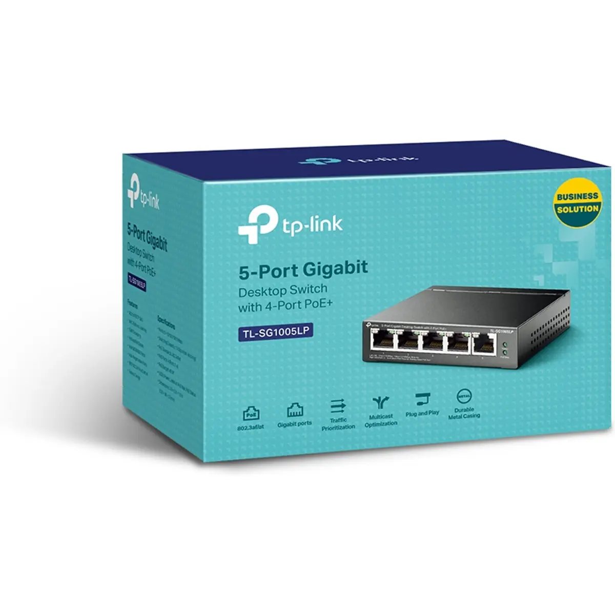 Desktop Switch com 5 portas Gigabit 10/100/1000 Mbps, 4 delas com PoE+