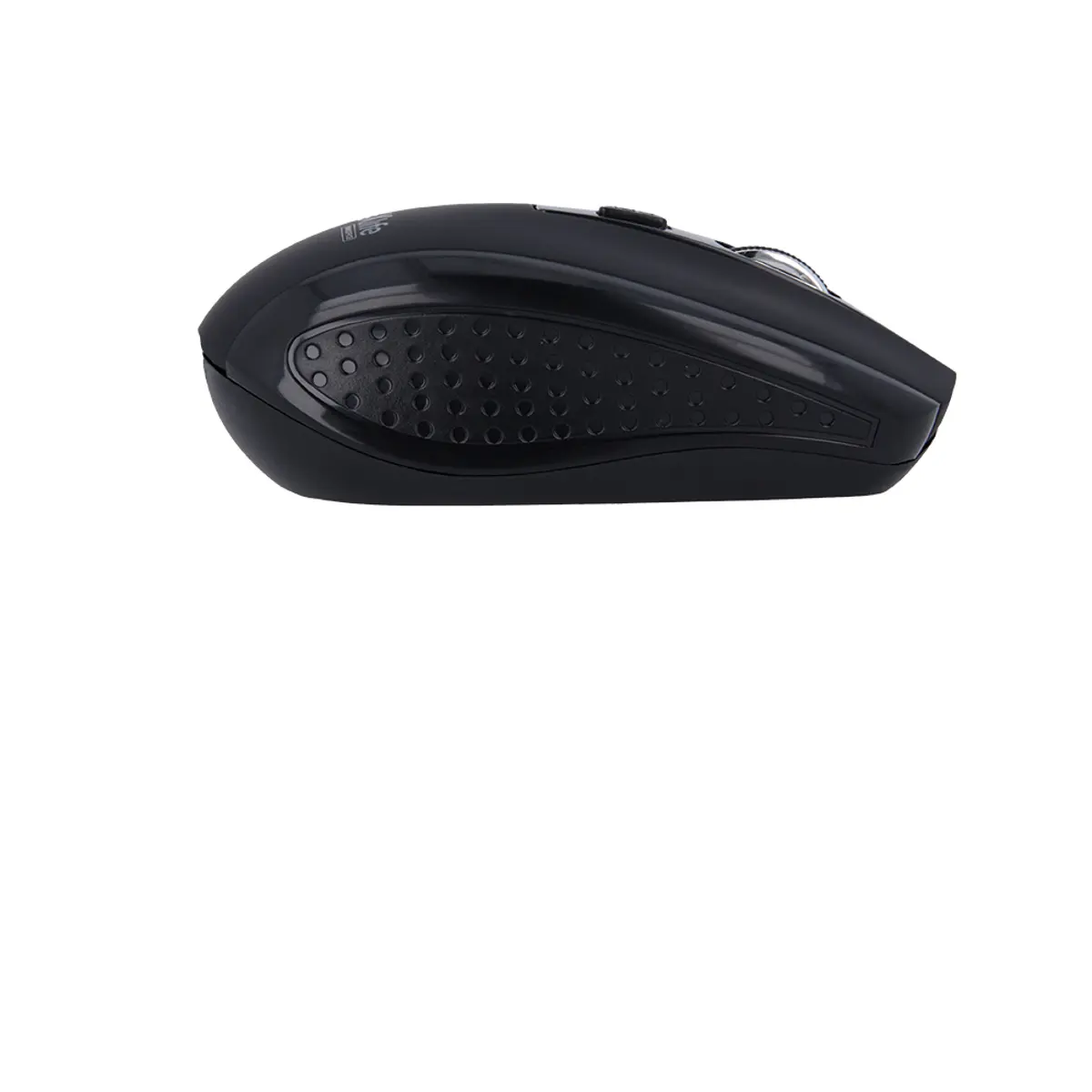 Rato óptico sem fio com conectividade 2.4GHz, alcance de transmissão até 10 metros, 6 botões e DPI ajustável de 800/1000/1600. Alimentado por 1x AAA, corpo em plástico preto, compatível com Windows 7, 8, 10 e Vista. Dimensões 90 x 58 x 35 mm.