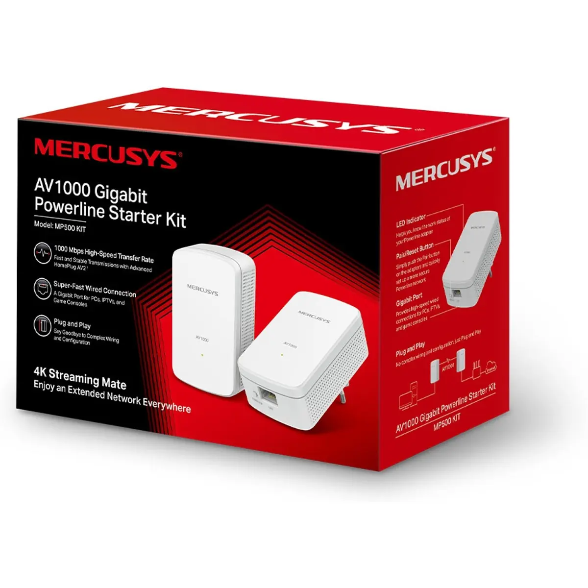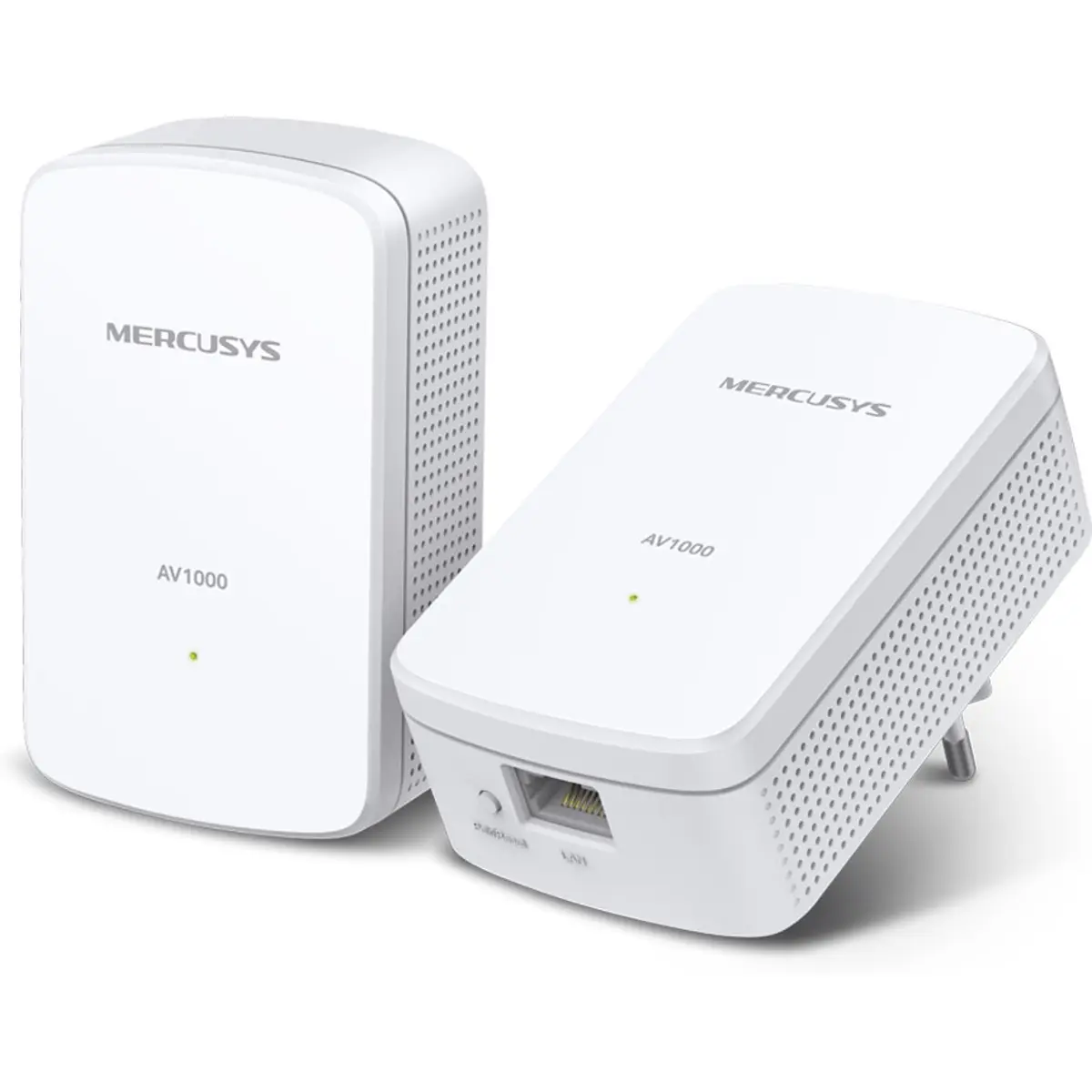 Kit de 2 Adaptadores Powerline AV2 1Gbps, cada um com uma porta Ethernet RJ45 1Gbps. Permite utilizar um circuito eléctrico da sua casa para ligar PC's e outros equipamentos em rede até 300m de distância.