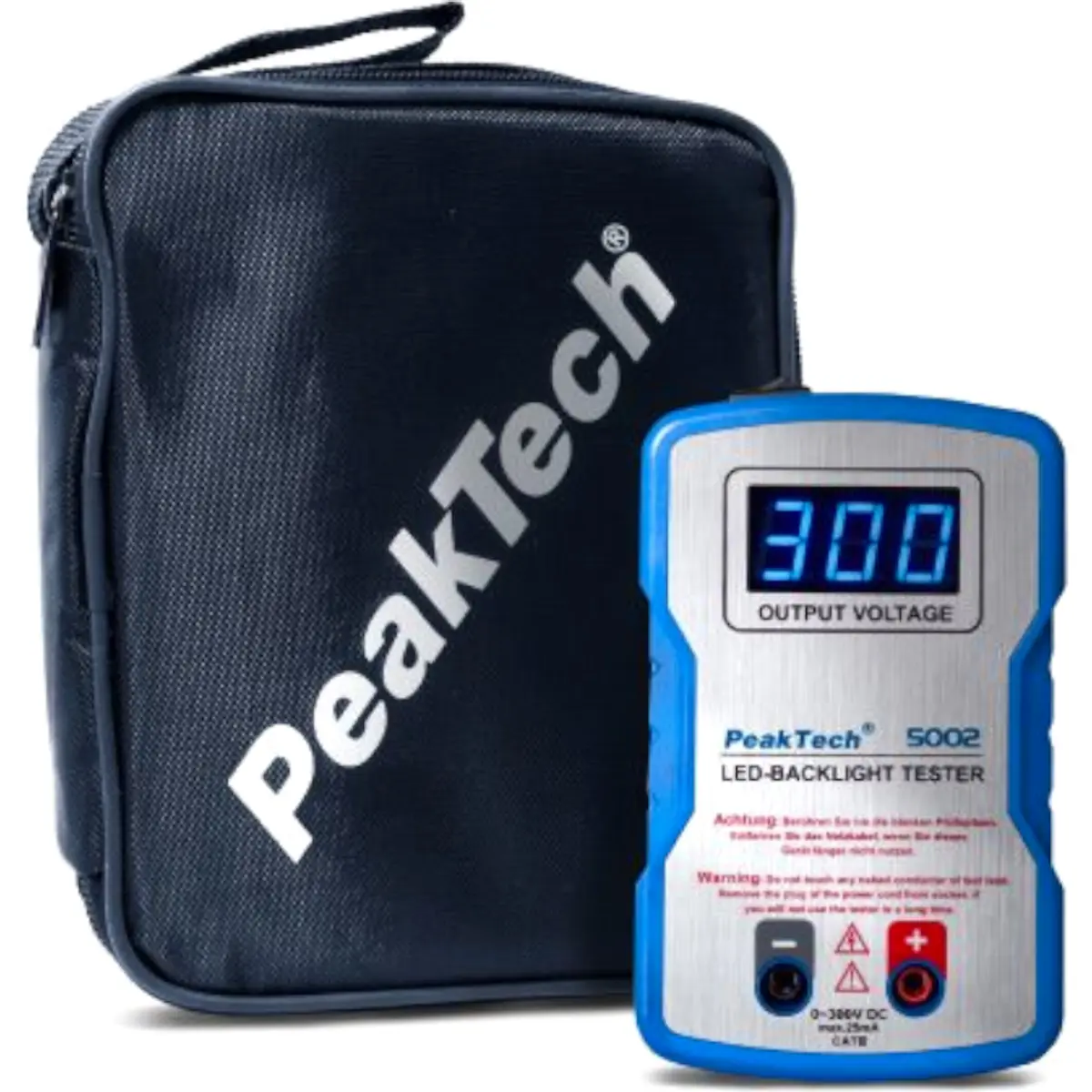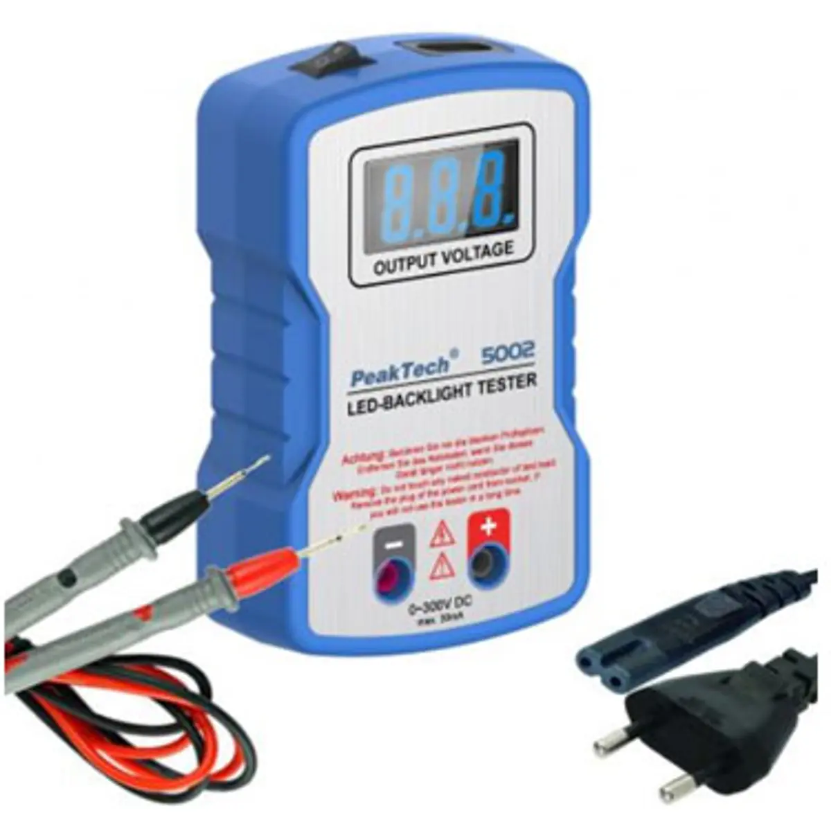 Testador de componentes extremamente prático para LEDs e outros componentes. O dispositivo emite automaticamente uma tensão de saída elevada entre 0 e 300 VCC, que se adapta à carga conectada, para que os componentes sensíveis não sejam destruídos. Especialmente adequado para a oficina de serviço e reparação.