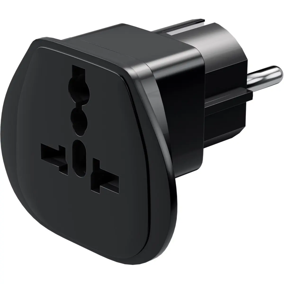 Adaptador de viagem Euro Schuko (Tipo F) macho -> universal preto