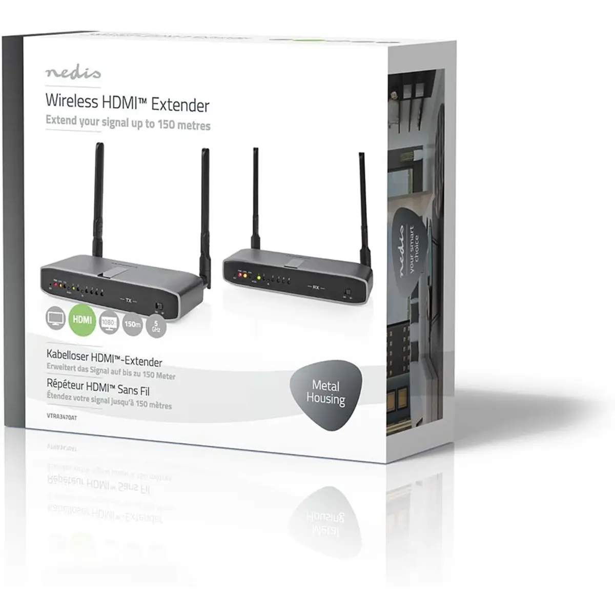 Este extensor Nedis Wireless HDMI™ oferece transmissão sem fios de sinal HDMI™ de um equipamento áudio/vídeo (como uma Box ou um PC) para uma TV (ou projector ou monitor) até uma distância de 150 metros. O sinal HDMI™ passa mesmo através de paredes e tectos. Ideal quando não é possível uma ligação por cabo ou quando não se quer puxar uma ligação por cabo. Com este extensor, sem fios, pode ter um sinal de TV em qualquer parte da casa sem ter uma ligação de televisão neste local.