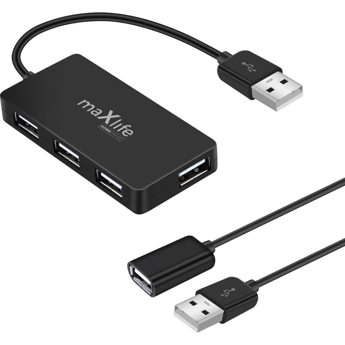 Maxlife - HUB USB 2.0 de 4 portas + cabo USB 1.5m