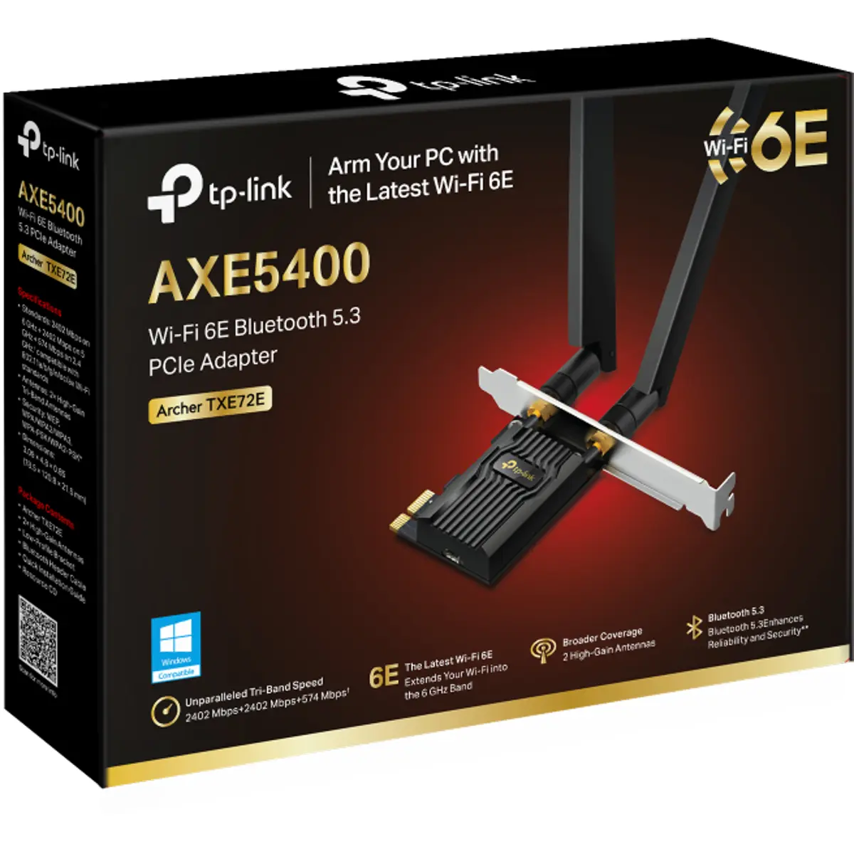O TP-Link Archer TXE72E é um adaptador PCIe de alto desempenho, projetado para fornecer uma conectividade Wi-Fi 6E ultraveloz e estável. Com suporte para a nova banda de 6 GHz, oferece velocidades de até 2402 Mbps em 5 GHz e 6 GHz, e até 574 Mbps na banda de 2.4 GHz. Equipado com tecnologia Bluetooth 5.3, garante uma comunicação sem fios mais eficiente e segura. O Archer TXE72E é ideal para utilizadores que exigem altas taxas de transferência de dados, seja para jogos, streaming ou tarefas intensivas, e é compatível com os padrões de segurança mais recentes, como o WPA3.