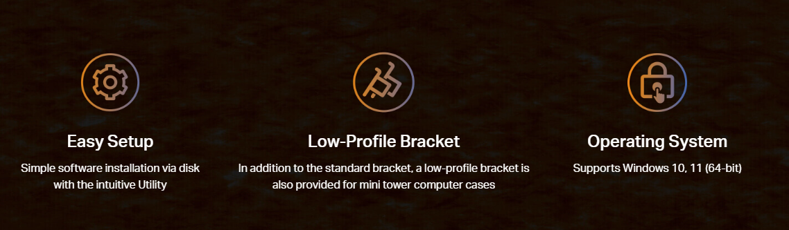 - Conteúdo da embalagem: Archer TXE72E, 2× Antenas de Alta Ganho, Bracket de Perfil Baixo, Cabo do Header Bluetooth, Guia de Instalação Rápida, CD de Recursos