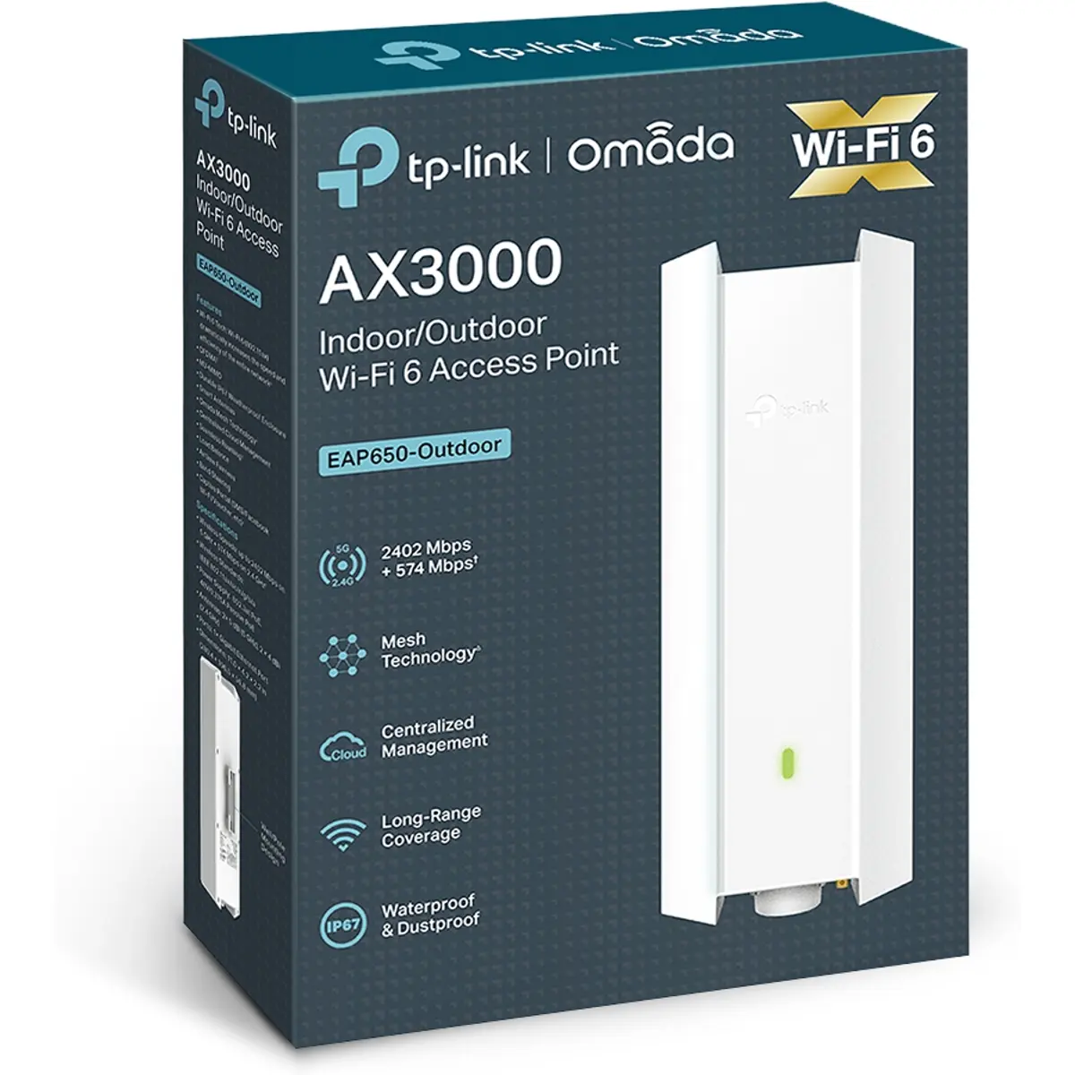 Ponto de acesso WiFi 6 AX3000 para interiores/exteriores, que oferece velocidades mais rápidas (2402Mbps nos 5GHz e 574Mbps nos 4GHz), menos atrasos, menos interferência e maior capacidade.