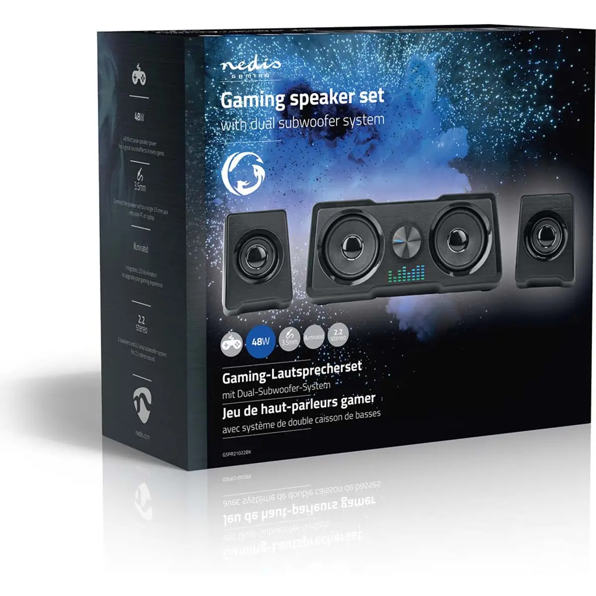 Estas colunas de PC foram projetadas para oferecer uma experiência de som excepcional para jogadores. O sistema Nedis 2.2 inclui 2 alto-falantes satélites e um subwoofer com 2 alto-falantes de graves, proporcionando uma resposta dinâmica rápida e um som potente com todos os matizes nas frequências mais baixas. Além disso, o controle de graves e o subwoofer duplo permitem personalizar o som de acordo com as preferências do usuário.