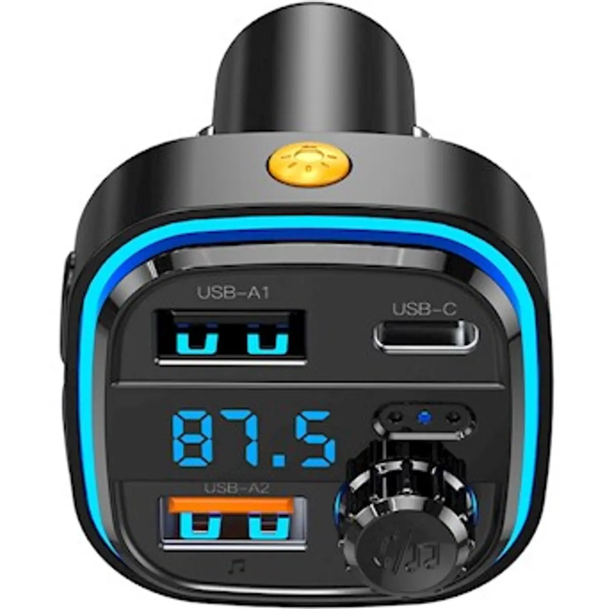 Atenda e rejeite chamadas, ligue ao último número, altere a frequência, gerencie músicas e ajuste o volume - tudo com um único transmissor.