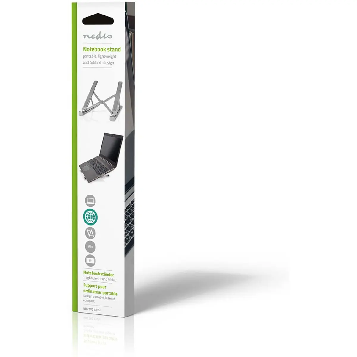 Este suporte para portáteis Nedis, compacto, leve e dobrável, é indispensável para a sua secretária. O suporte garante que o seu portátil, tablet ou smartphone sejam posicionados no ângulo de visão ideal, para que possa trabalhar confortavelmente sempre. O design aberto do suporte proporciona excelente ventilação.
