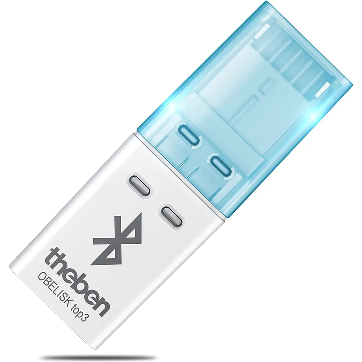 O Dongle Bluetooth Theben OBELISK Top3 é um dispositivo de baixa energia Bluetooth que permite a transmissão de programas de temporização e comandos diretos do aplicativo para o temporizador top3. É conectado à interface padrão OBELISK do top3 e oferece alta segurança contra manipulações, permitindo a transferência de programas de temporização apenas quando o dongle está conectado ao dispositivo. Além disso, possui um consumo em modo de espera mais baixo em comparação com soluções integradas e uma função de armazenamento incorporada (EEPROM), que também pode ser utilizada no conjunto de programação do PC. O dongle pode ser usado como um cartão de memória para todos os dispositivos top3 e top2 conectados à rede.