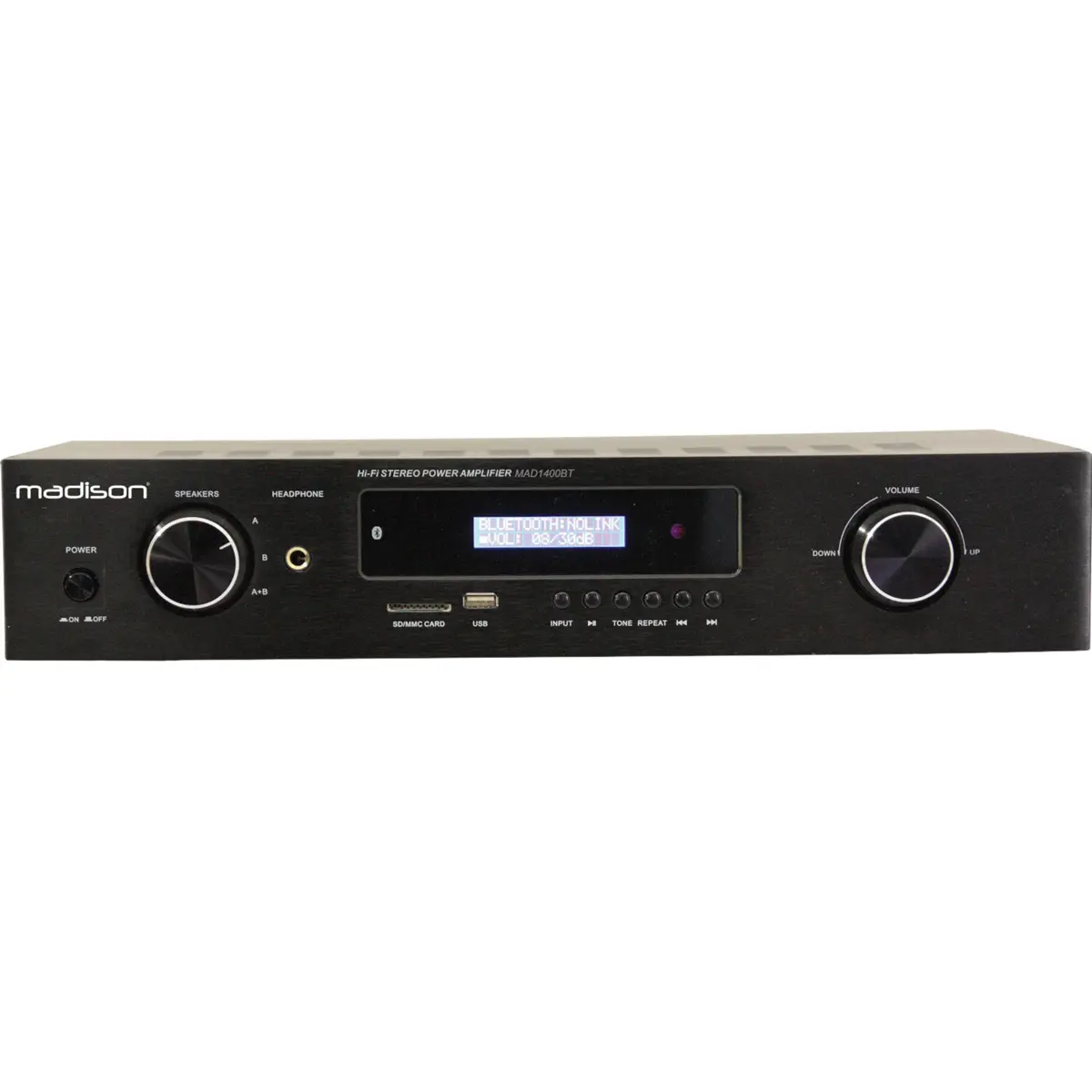 Amplificador Stereo com sintonizador FM digital, Leitor USB/SD embutido e Bluetooth.