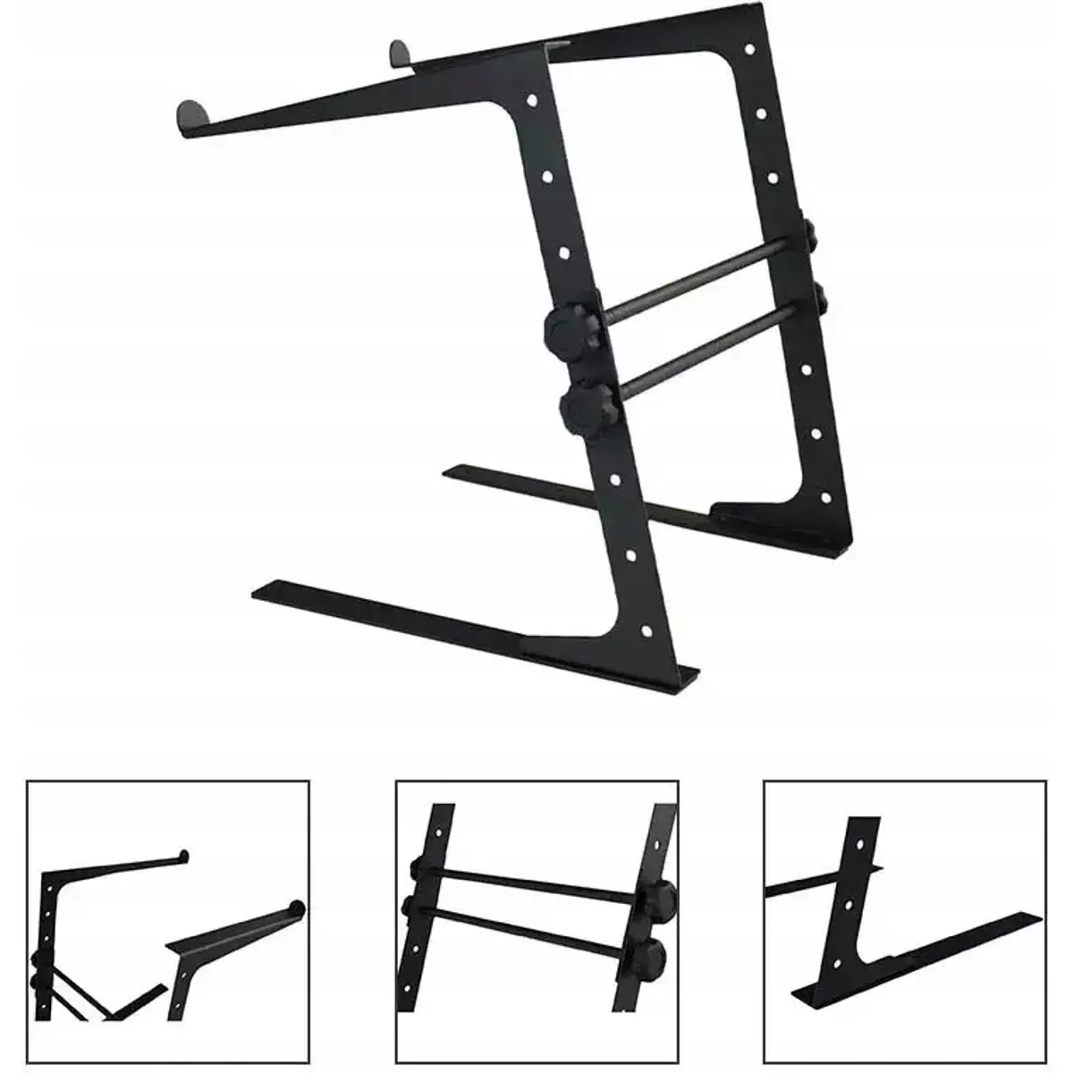 O SLAP100 é um suporte para computador portátil, com construção resistente e ajustável. Foi projetado para fornecer uma solução prática e conveniente para a utilização de um portátil por pessoas que trabalham em pé. Ideal para músicos, DJs ou mesmo para utilização em escritórios, salas de trabalho, estúdios e muito mais.