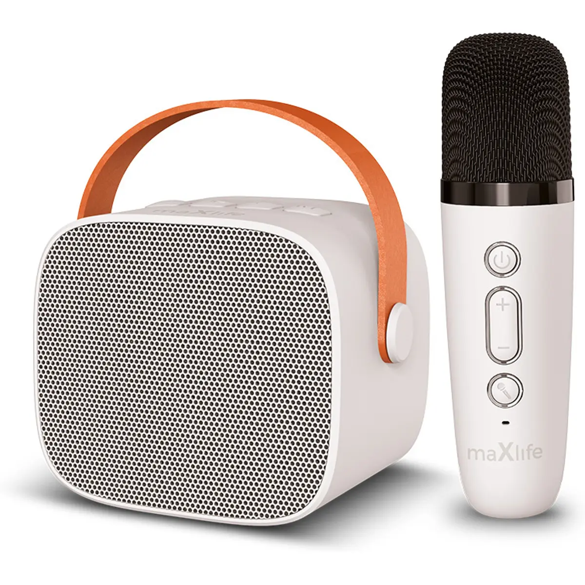 O conjunto de karaoke Bluetooth MXKS-100 é o companheiro perfeito para animar as festas. Este conjunto consiste em um microfone e um alto-falante Bluetooth. Não apenas prático, mas também visualmente atraente, sua construção sólida e design cativante o tornam um destaque.