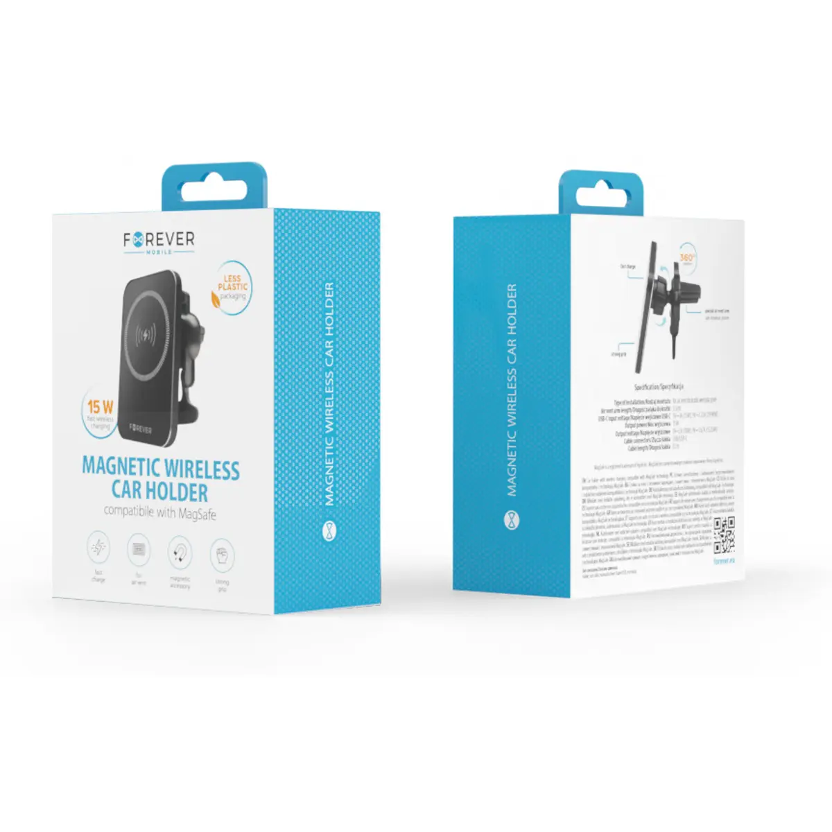 Forever MACH-100 - Suporte para telemóvel c/ carregamento Qi Wireless 15W magnético (MagSafe)