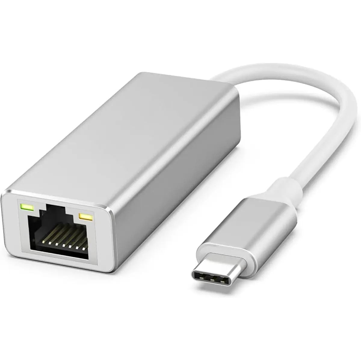 Adaptador USB-C 3.2 para Ethernet Gigabit com porta RJ45 10/100/1000 Mbps, oferecendo ligação estável e rápida. A instalação Plug and Play é simples e rápida, permitindo ligar o MacBook, Chromebook ou tablet a redes com fio. Ideal para ultrapassar limitações de portas USB-C, mantendo desempenho estável e compatibilidade entre dispositivos.