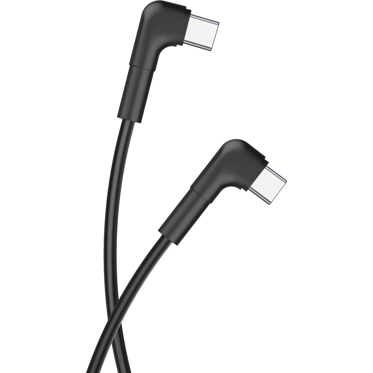 Cabo USB-C para USB-C de 1 m, com conectores angulados de 90º, feitos em silicone flexível e reforçados para maior durabilidade. A construção oferece boa transferência de dados, resistência a danos mecânicos e maior vida útil, ideal para utilização em espaços reduzidos, em casa, no escritório ou em viagens, com design prático que facilita a colocação e o manuseamento.