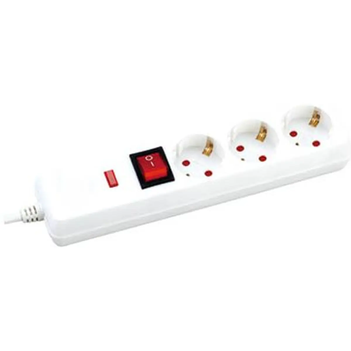 Bloco de tomadas com base múltipla de 3 tomadas Schuko, proteção contra picos de tensão e interruptor para ligar/desligar. Ideal para uso interior com cabo de 1,5 m em H05VV-F, secção 3x1,5 mm, cor branca. Potência máxima 3680 W.