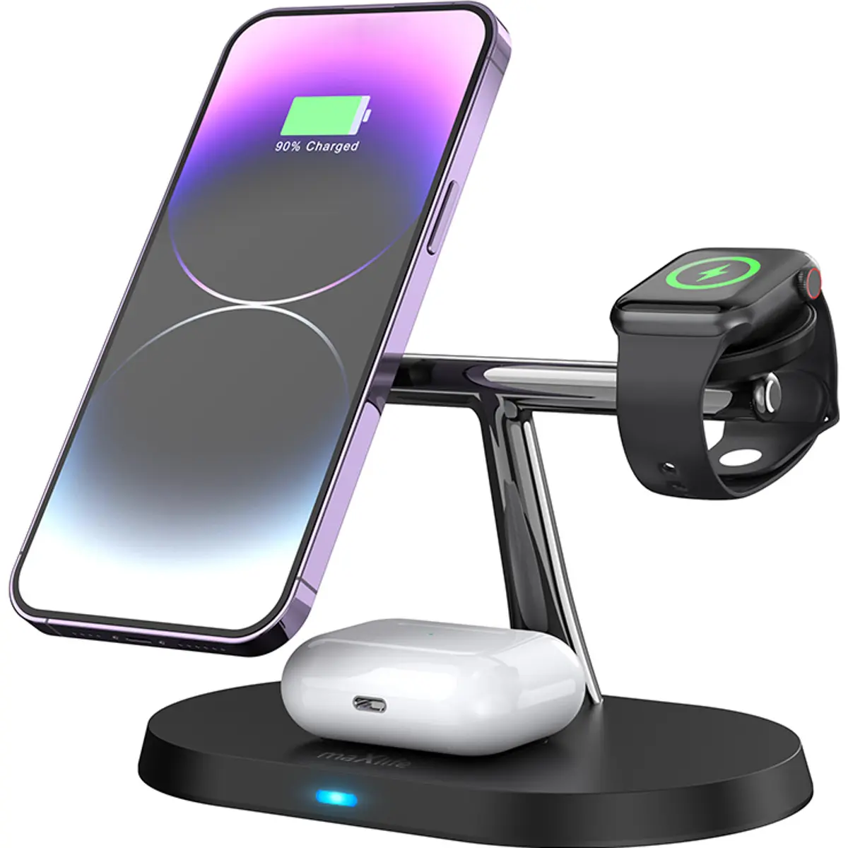 Maxlife MXWC-03 - Estação de carregamento Wireless 3-em-1 15W para dispositivos Apple (MagSafe)