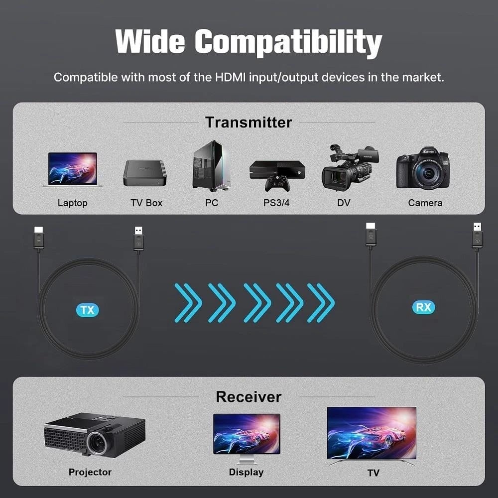 Transmita sinais de vídeo até uns impressionantes 50 metros (164 pés), proporcionando flexibilidade na sua configuração e eliminando a necessidade de cabos incómodos.