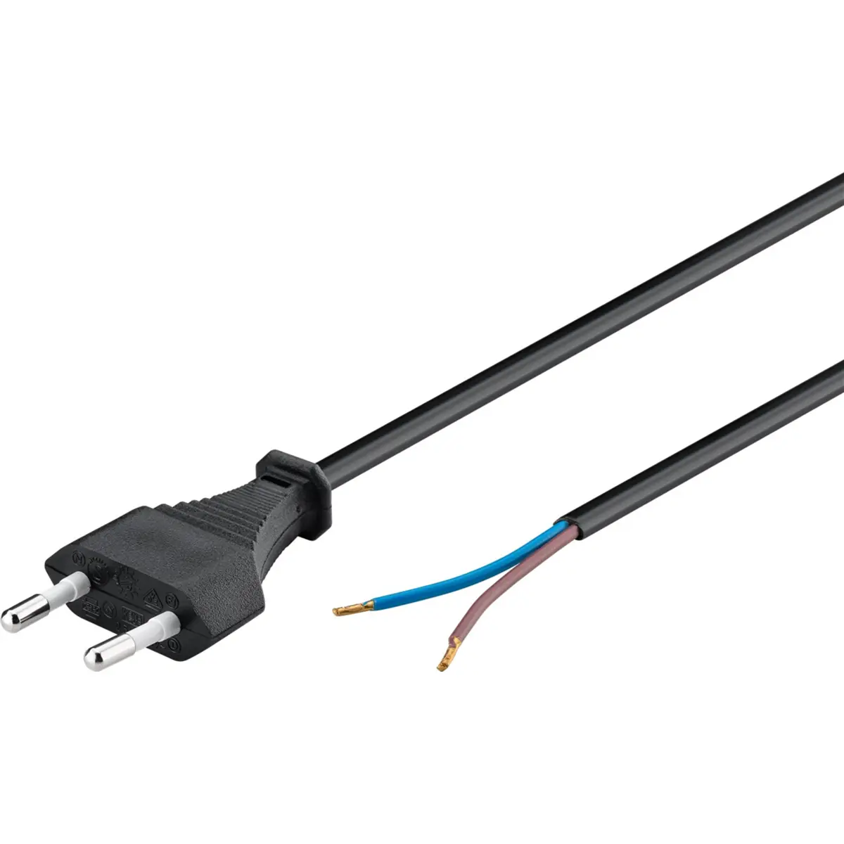 Cabo de alimentação 2x0.75mm² com ficha Euro 2.5A - preto - 1.9m