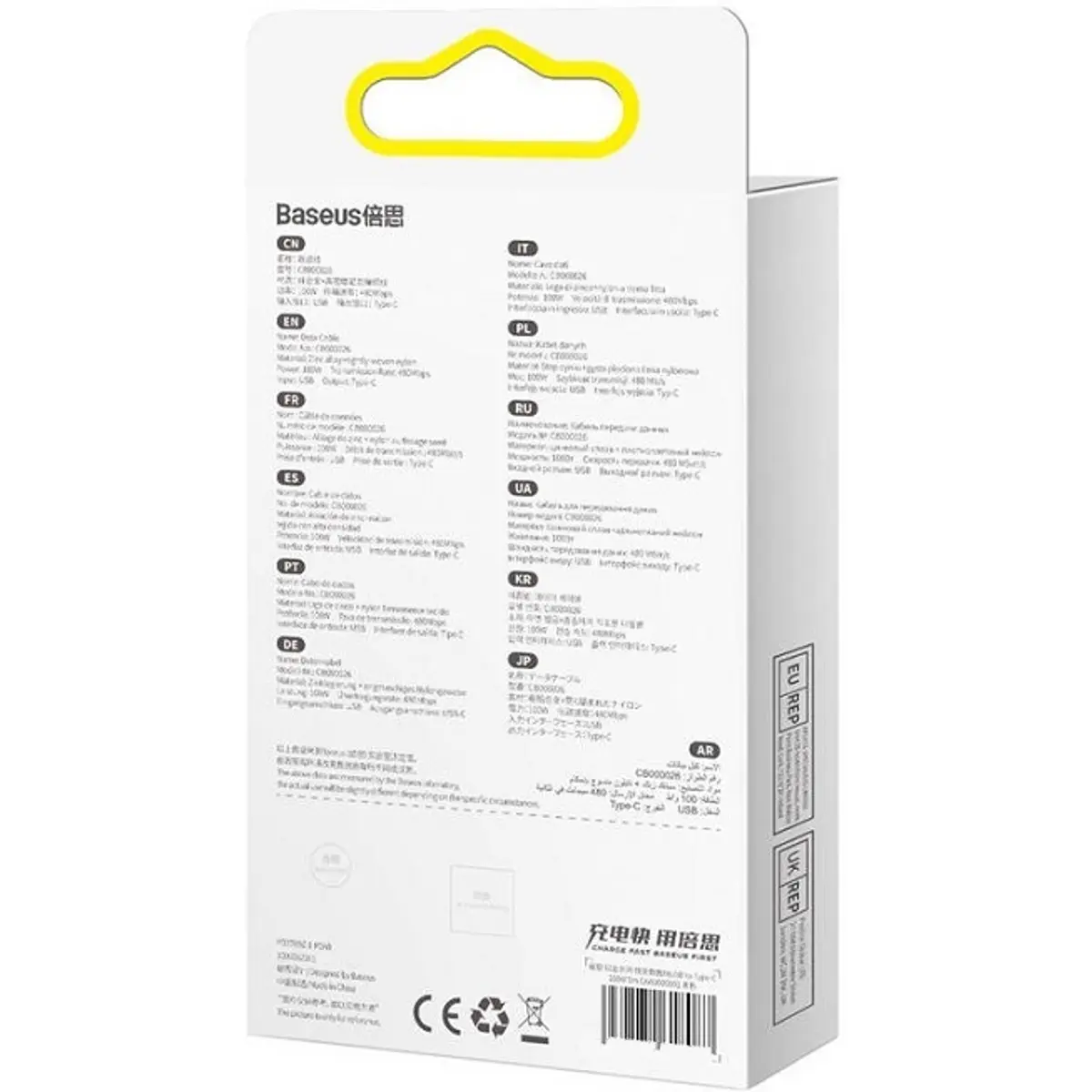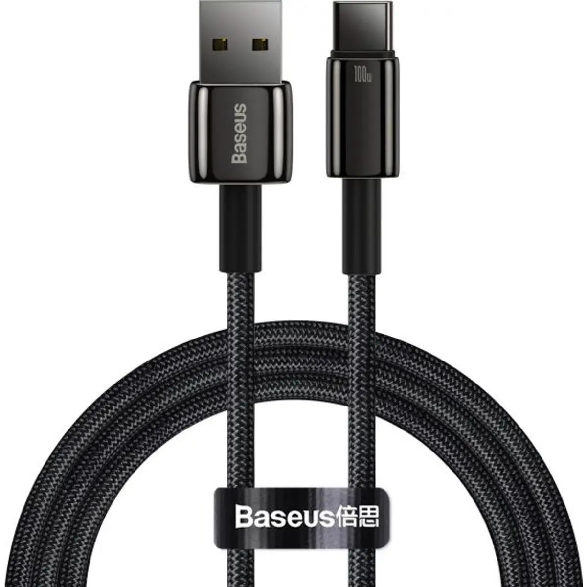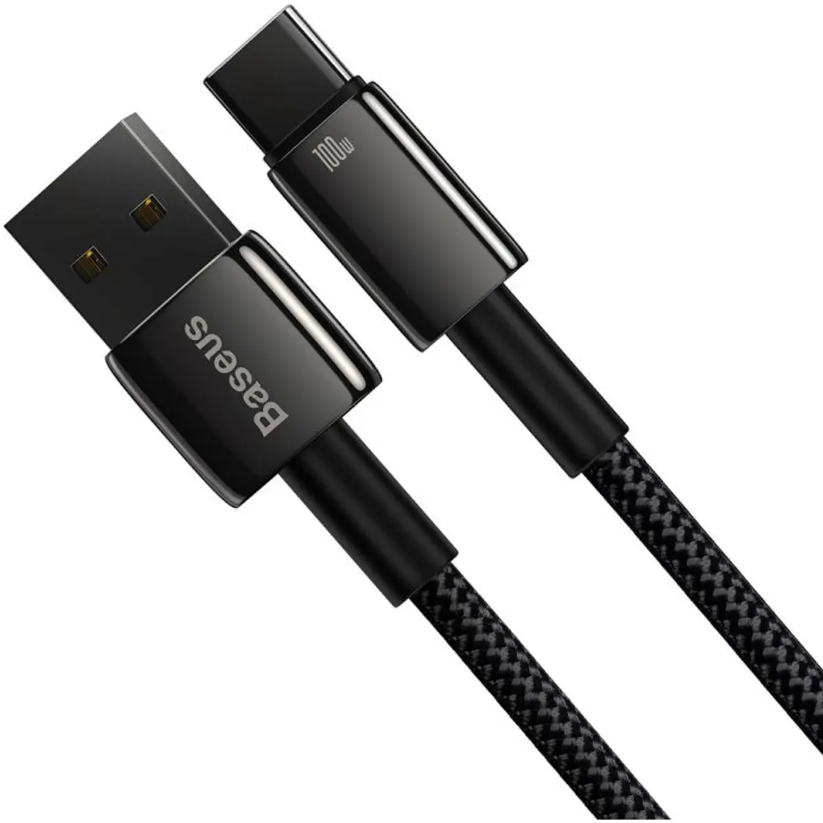 Baseus CAWJ000001 - Cabo USB-A ➝ USB-C 100W 6A c/ revestimento em nylon e fichas metálicas - preto - 1.0m