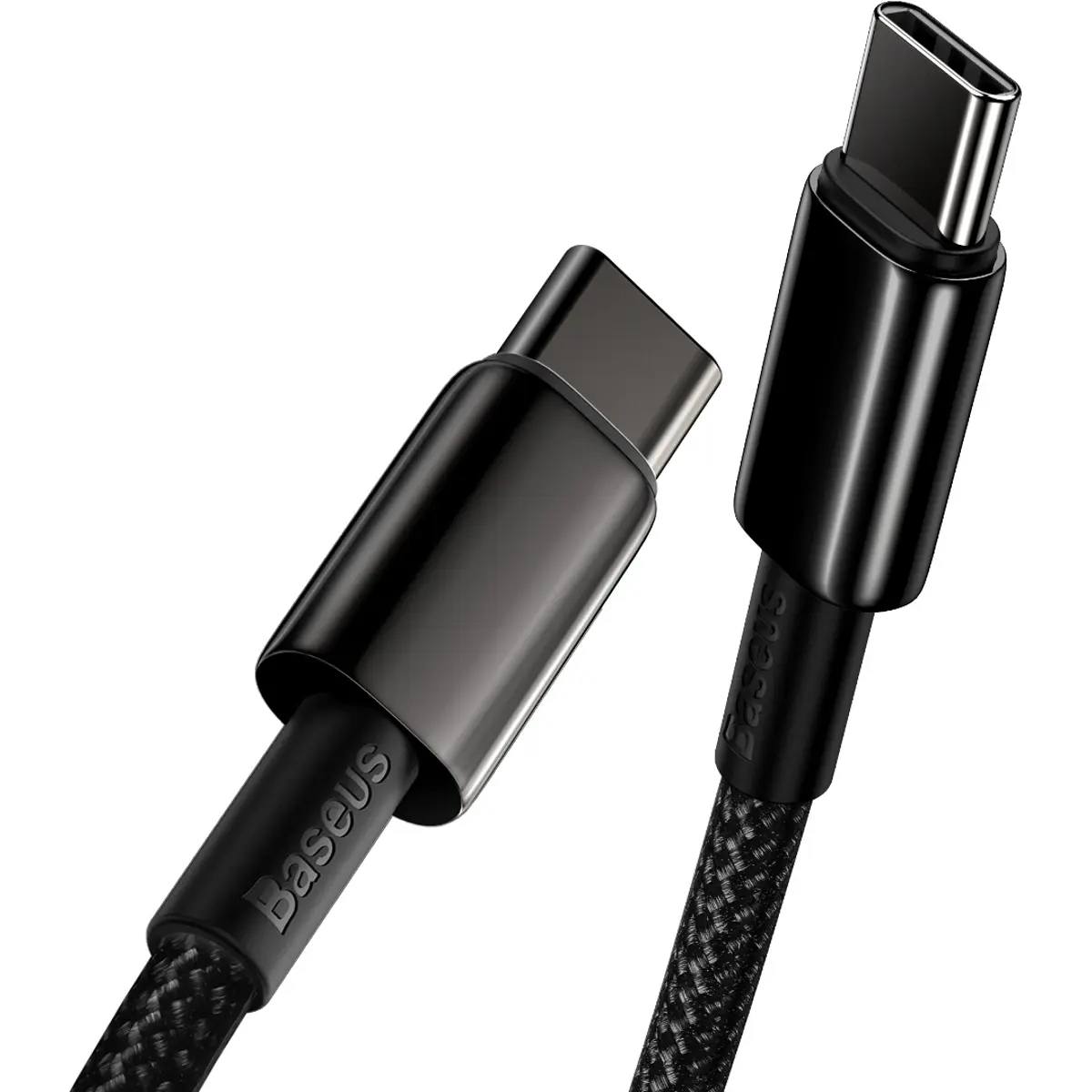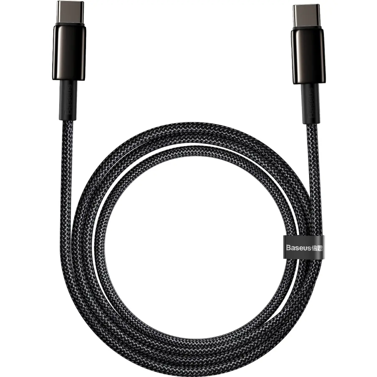 Baseus CATWJ-A01 - Cabo USB-C ⇿ USB-C 100W PD c/ revestimento de nylon e fichas metálicas - preto - 2.0m