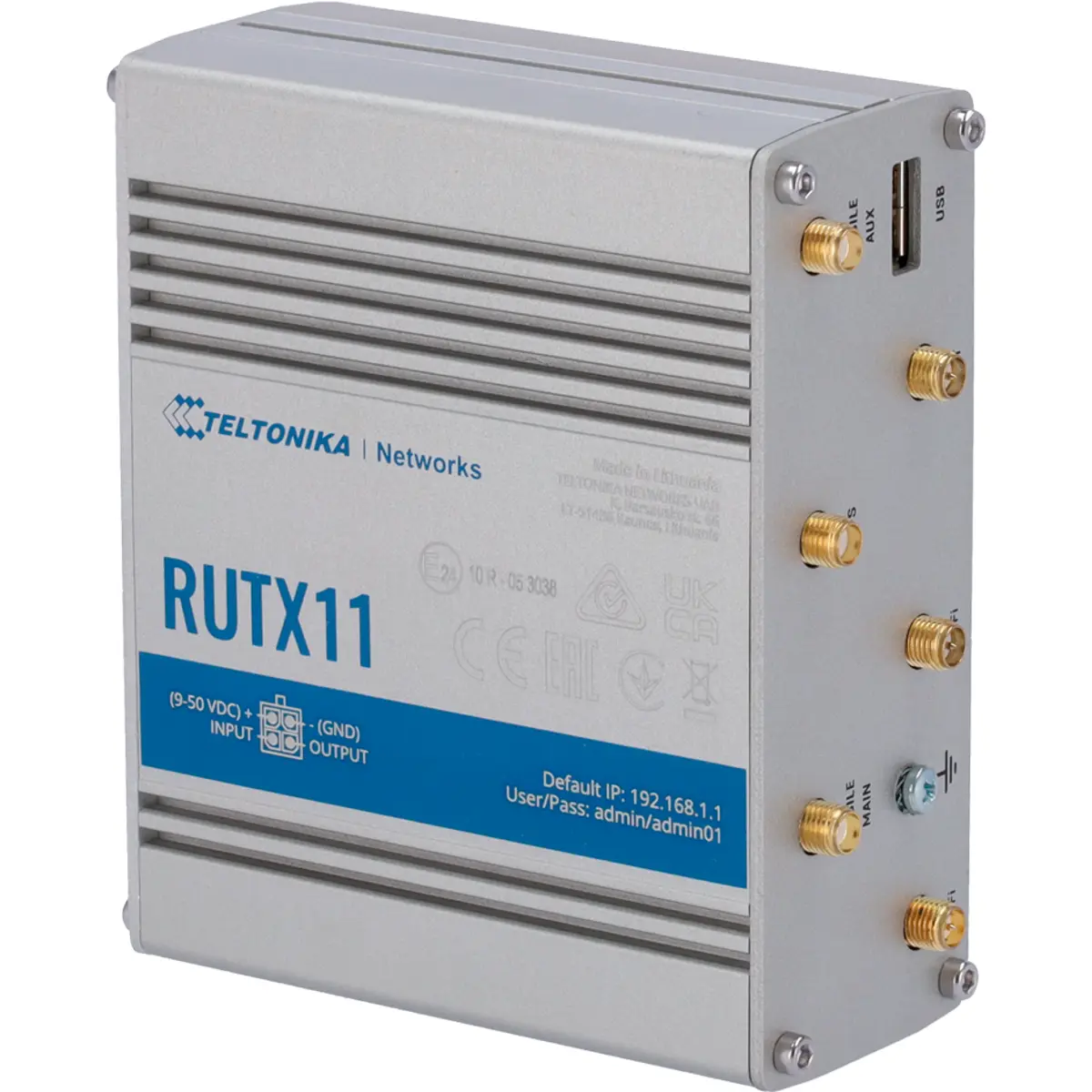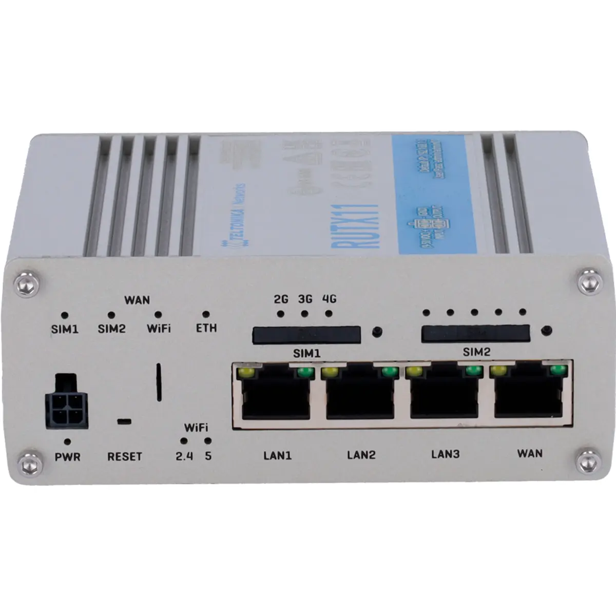 TELTONIKA Networks RUTX11 - Router industrial 4G LTE Cat6 Dual-SIM c/ 4 x portas Gigabit + WiFi + BLE + USB + I/O digital