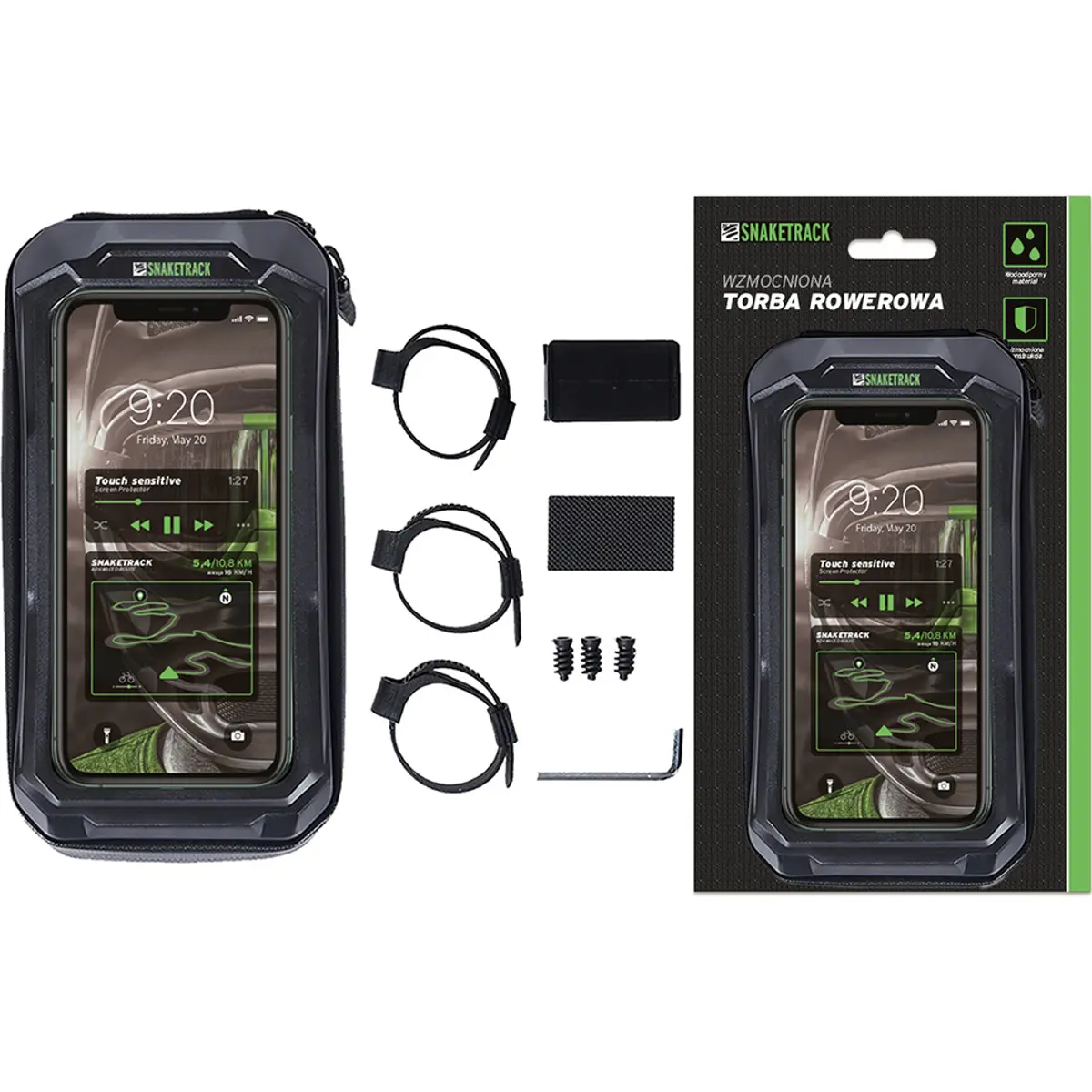 A mala para bicicleta Snake Track é o acessório perfeito para os ciclistas que desejam manter-se conectados e protegidos, mesmo em condições adversas. Com a sua construção reforçada em "hard-shell" e capacidade generosa de 1 litro, esta mala proporciona segurança e conveniência para transportar os seus itens essenciais durante os passeios de bicicleta.
