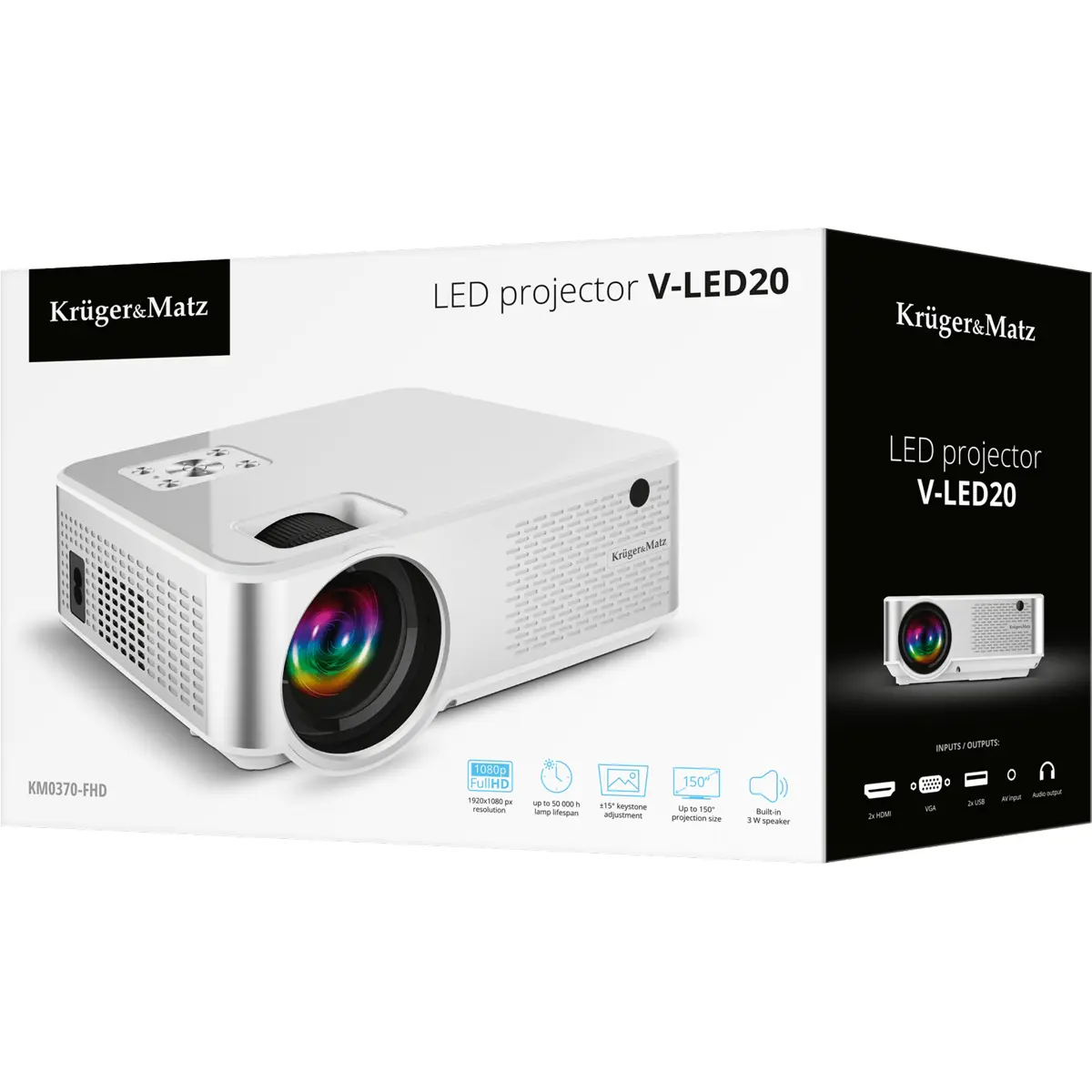 Krüger&Matz V-LED20 - Videoprojetor LED 70W 5000lm (1000:1) 1080p 15''-150''