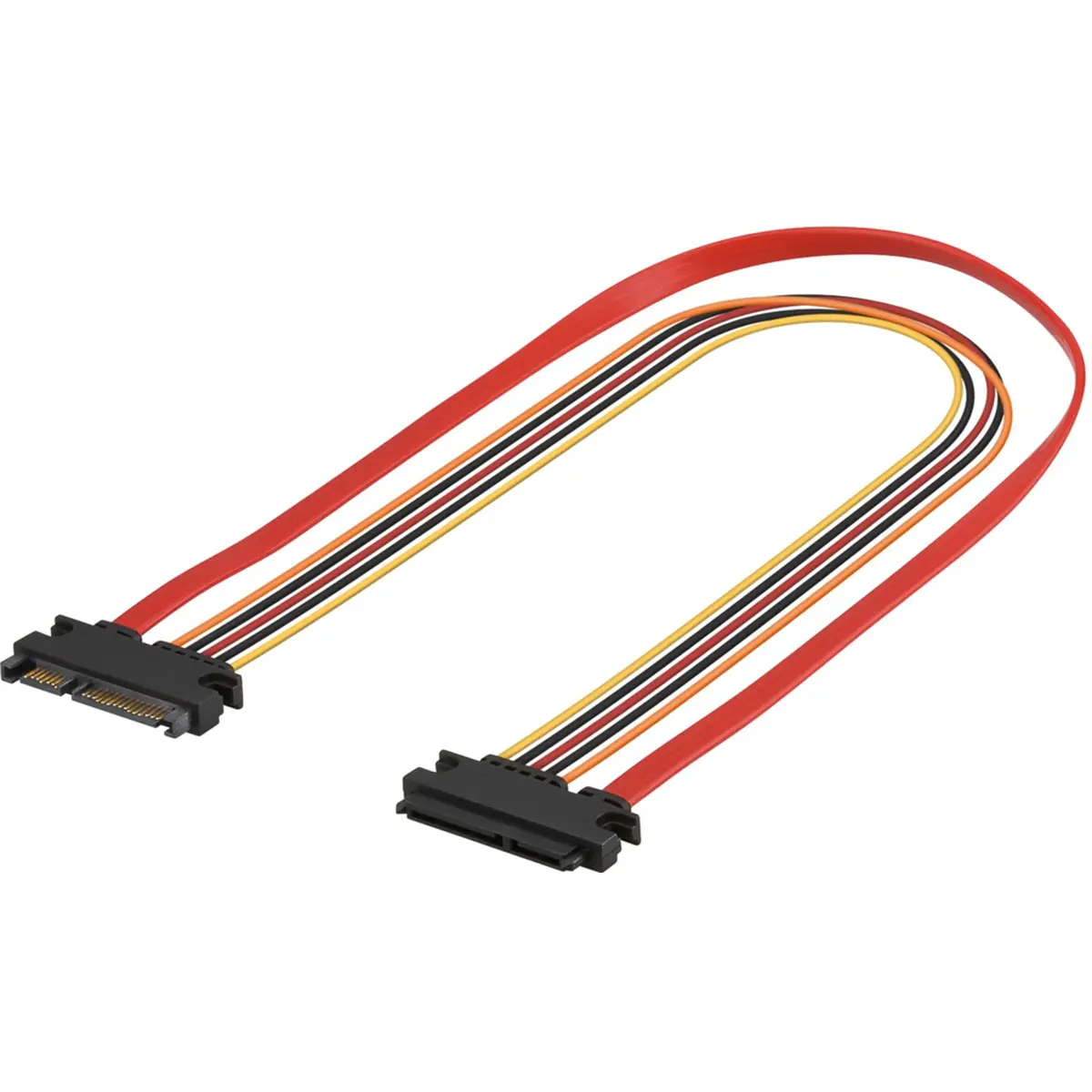 Este cabo extensor SATA de 50 cm permite ligar HDDs, unidades de DVD e Blu-ray com conector SATA, mantendo compatibilidade com a norma SATA. Utiliza conectores SATA padrão e é indicado para ligações entre componentes de armazenamento com interfaces SATA.