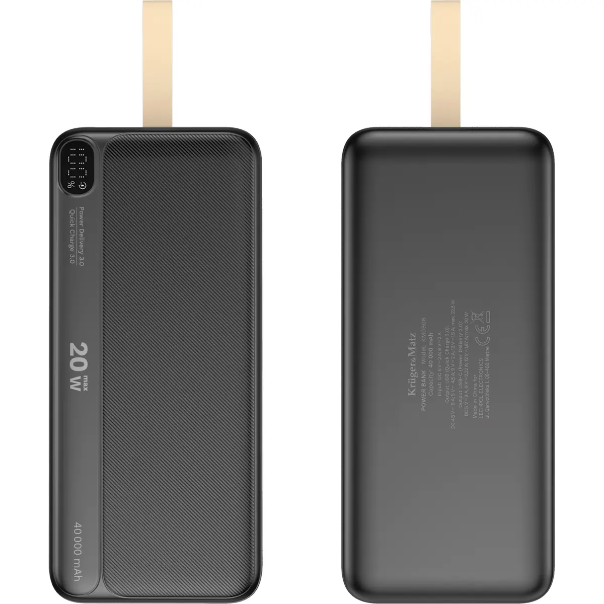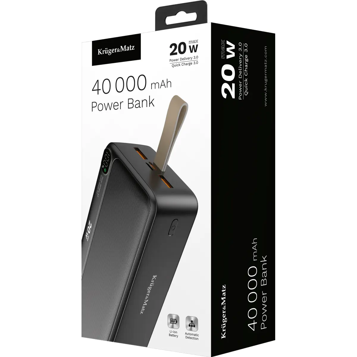 Krüger&Matz - Powerbank 40.000mAh 20W (2x USB-A + USB-C) QC/PD 3.0 c/ Display LED