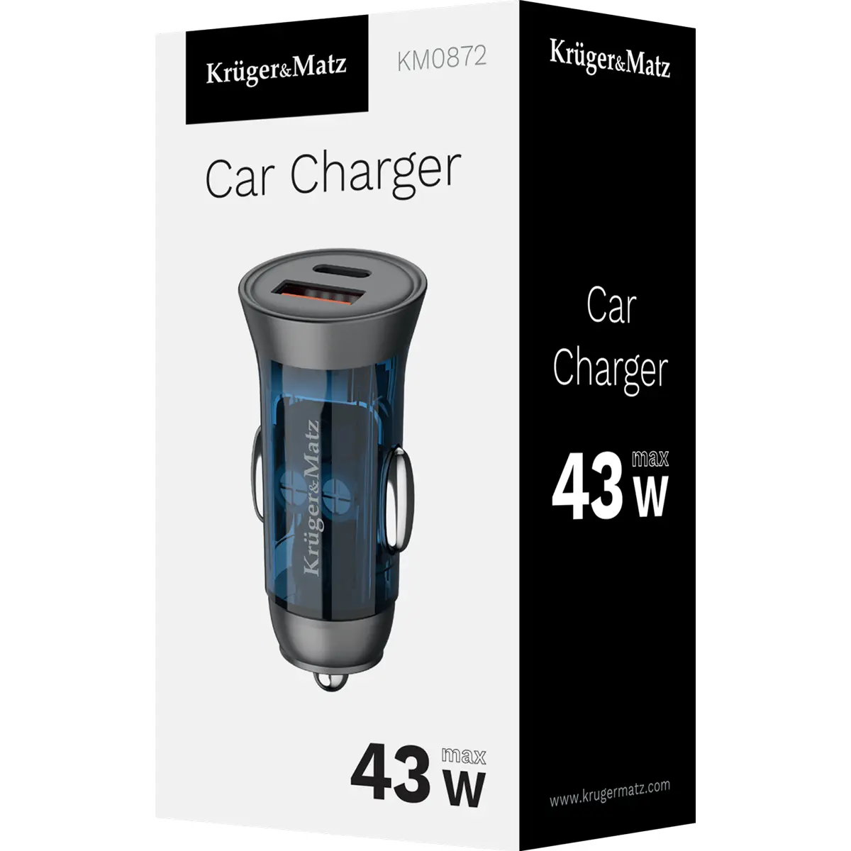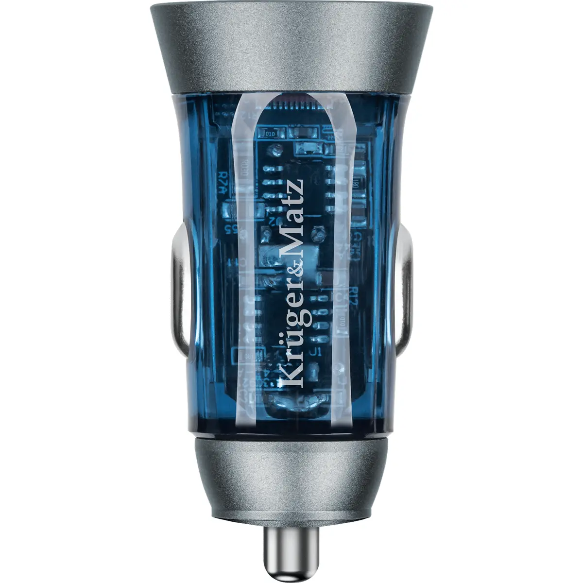 Krüger&Matz - Carregador de Isqueiro (12..24VDC) USB-A QC + USB-C PD 43W- transparente - XO CC49