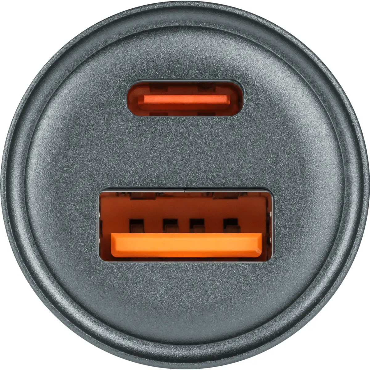 Carregador de isqueiro com USB-A e USB-C PD/QC até 43W, alimentado por 12-24V, ideal para o veículo. Oferece saídas USB-C: 5V/3A, 9V/3A e 12V/1,87A; USB-A: 5V/3A, 9V/2,22A e 12V/1,67A; potência máxima total 43W. Possui proteções contra sobrecarga e sobretensão. Certificações CE e RoHS. Estrutura em alumínio e ABS, contribuindo para durabilidade. Compatível com Power Delivery e Quick Charge, oferecendo carregamento rápido para smartphones, tablets e outros dispositivos no automóvel.