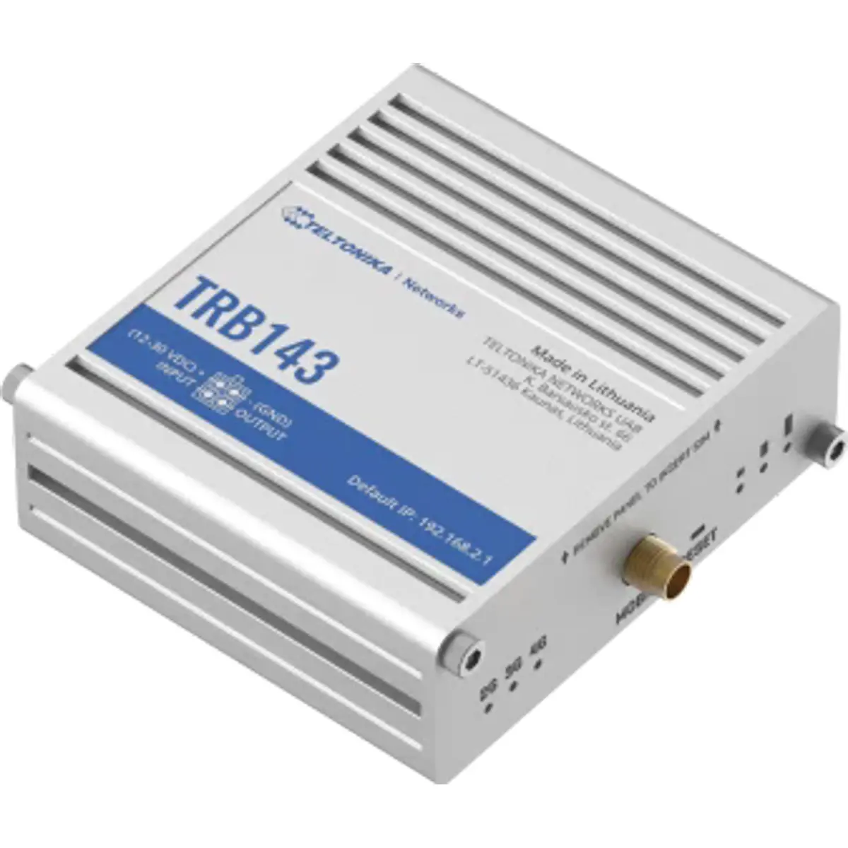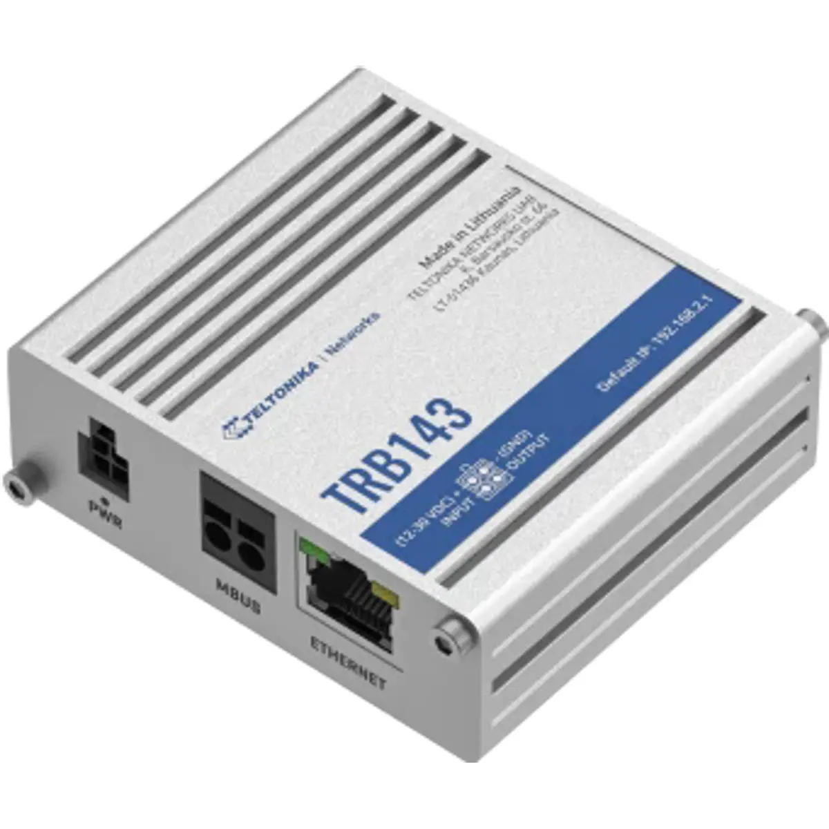 O Gateway industrial TRB143 foi concebido com uma interface M-Bus, integrada especificamente para aplicações de telemetria e monitorização de serviços públicos. Possui conetividade de Rede Móvel, uma porta Gigabit Ethernet e um par de entradas/saídas digitais, tornando-o aplicável a uma grande variedade de cenários de monitorização.